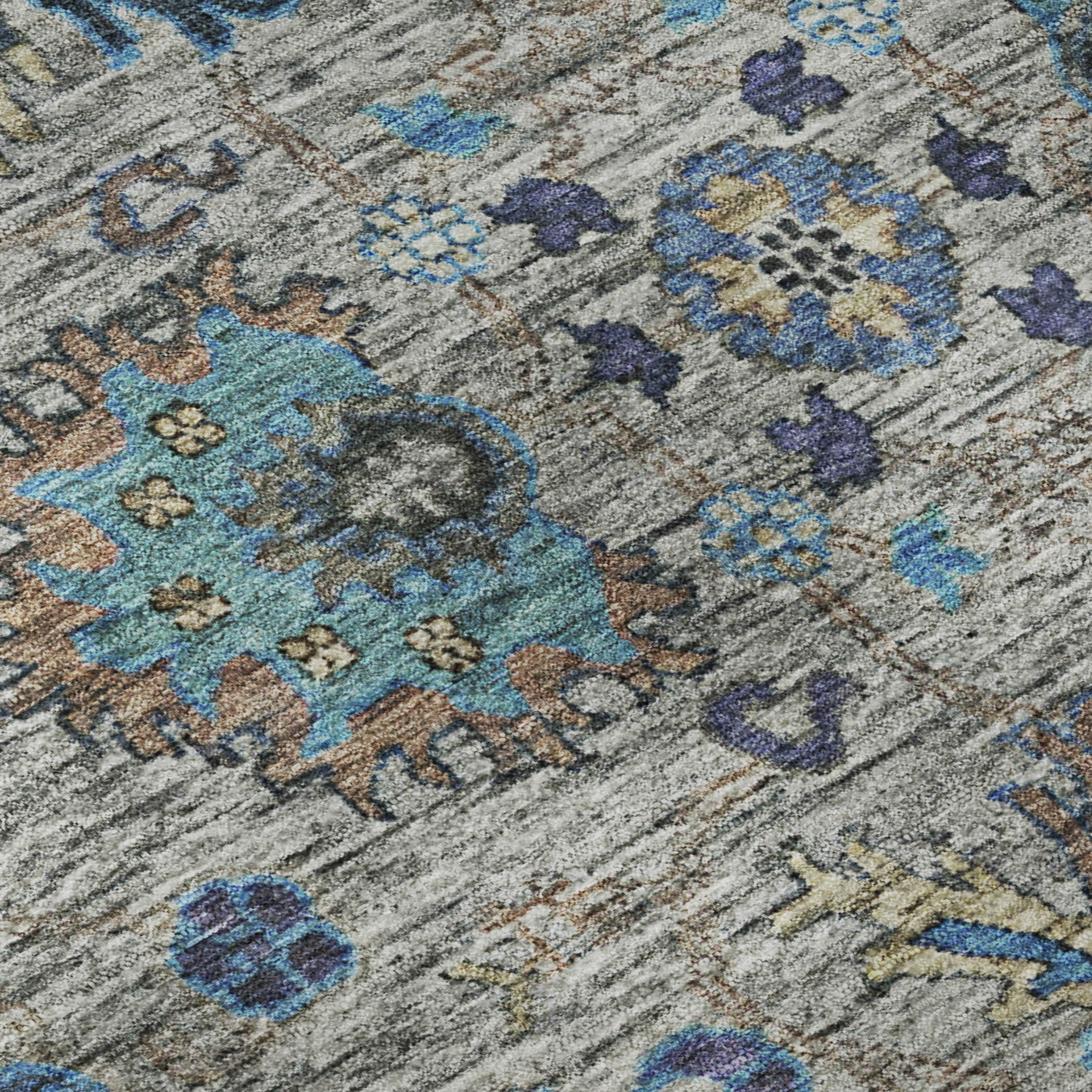 Add great coloration and comfortable texture to your space with this 5-foot x 8-foot pewter and teal oriental washable area rug with uv protection. Ideal for spaces with kids and pets, this rug is stain resistant to help repel dirt and spilled liquids. Built to last, this rug crafted from polyester fibers is known for its durability and long lasting appeal. Rugs are a great way to showcase your style, hide imperfections, warm your home and reduce noise. This larger sized, traditional styled rug is ready to create a focal point or statement piece in your room. 60.00-inch h x 90.00-inch w x 0.39-inch d.
