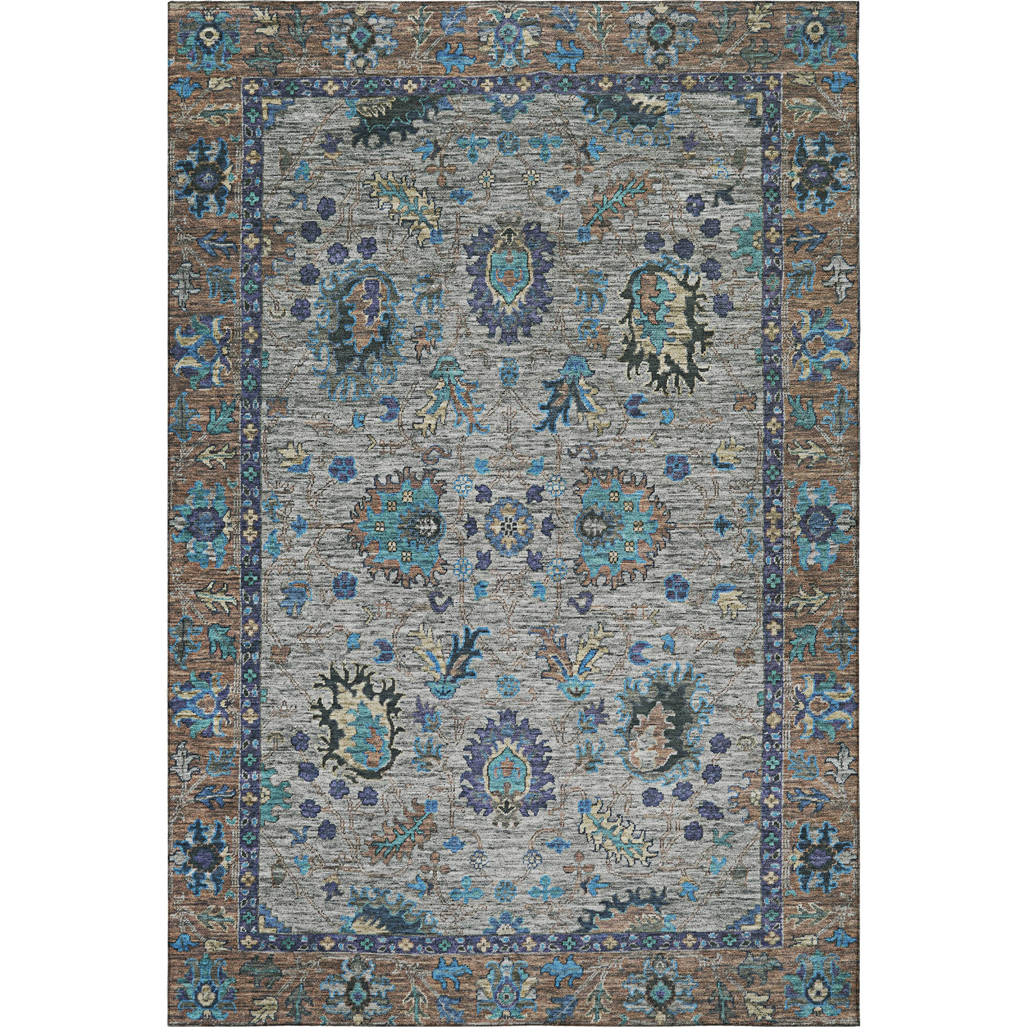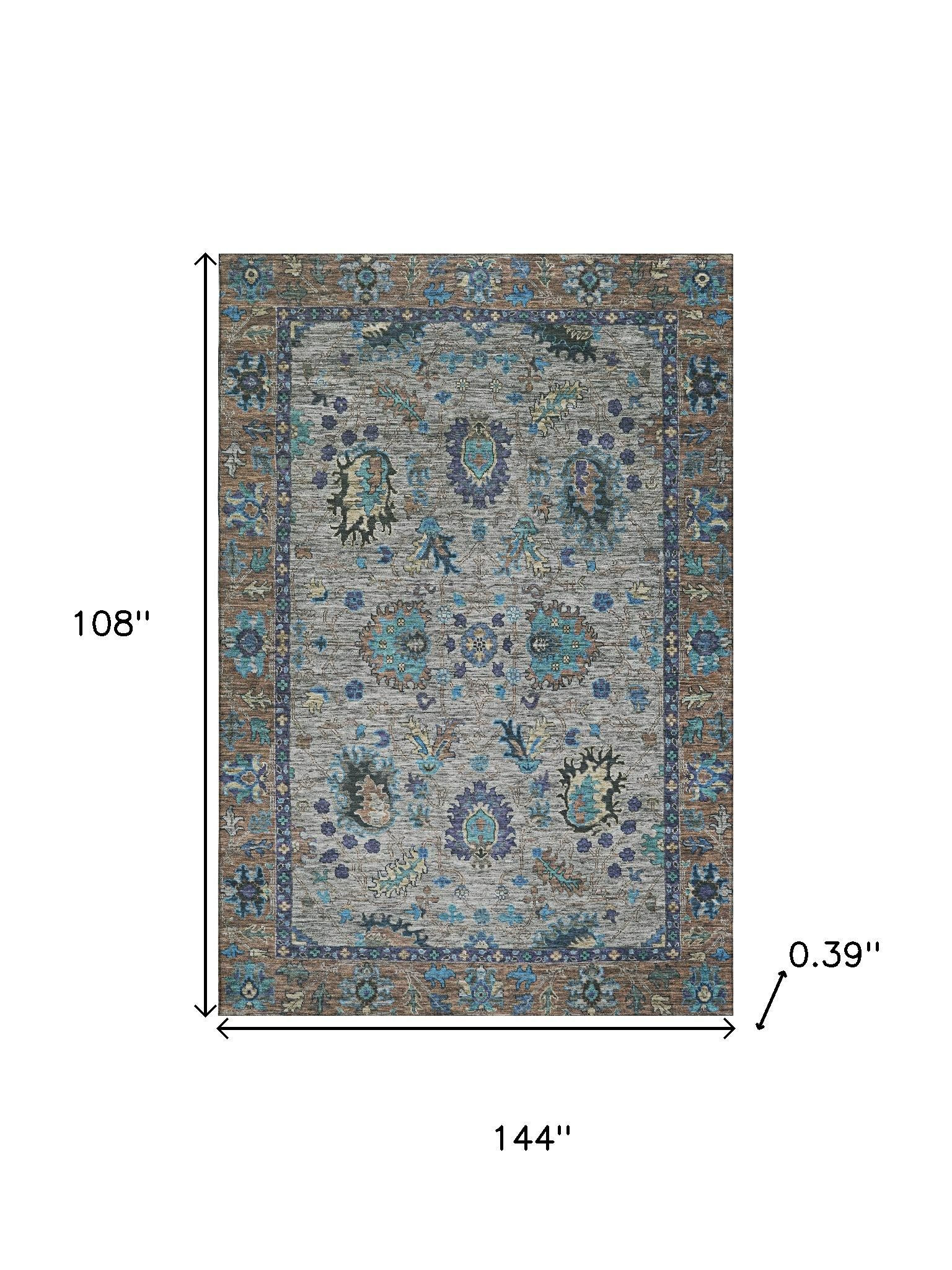 Set an inviting tone in your space with this 9-foot x 12-foot pewter and teal oriental washable area rug with uv protection. Ideal for spaces with kids and pets, this rug is stain resistant to help repel dirt and spilled liquids. Built to last, this rug crafted from polyester fibers is known for its durability and long lasting appeal. Rugs are a great way to showcase your style, hide imperfections, warm your home and reduce noise. This larger sized, traditional styled rug is ready to create a focal point or statement piece in your room. 108.00-inch h x 144.00-inch w x 0.39-inch d.