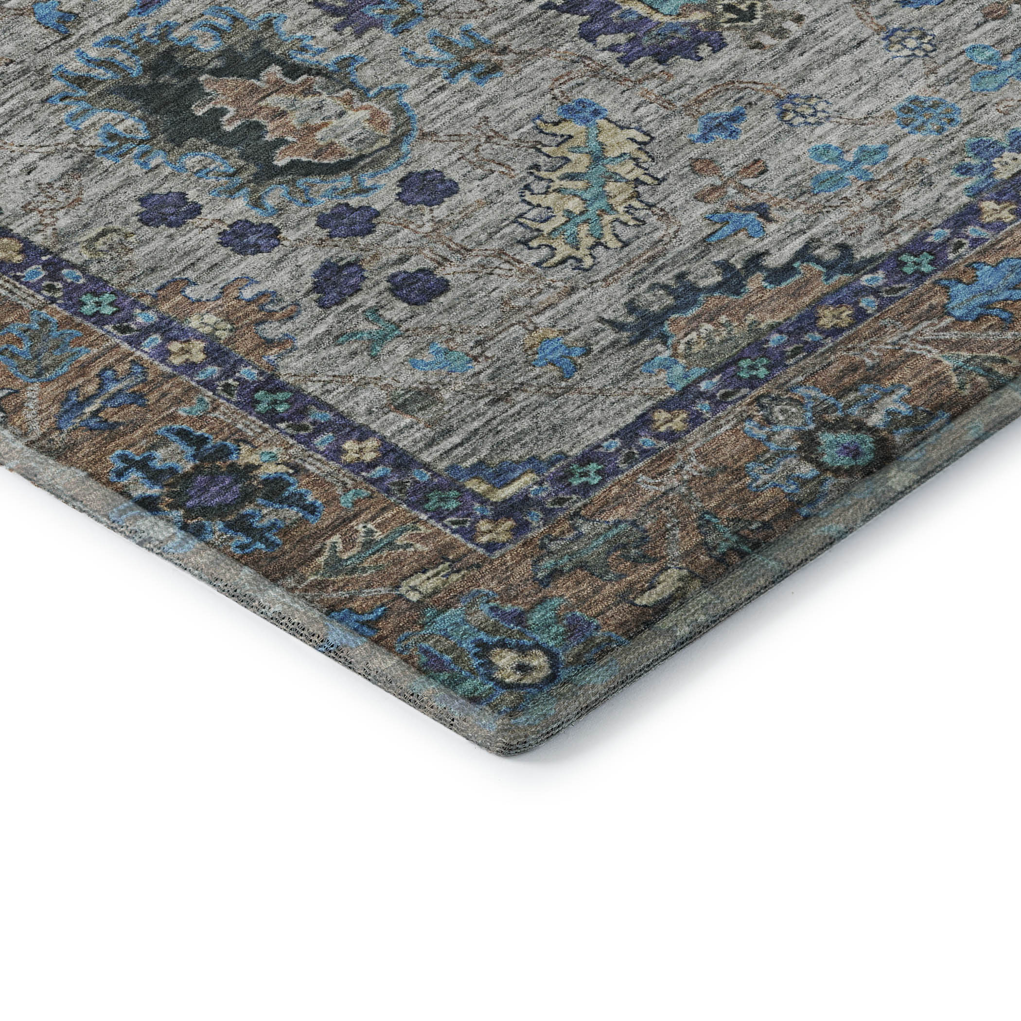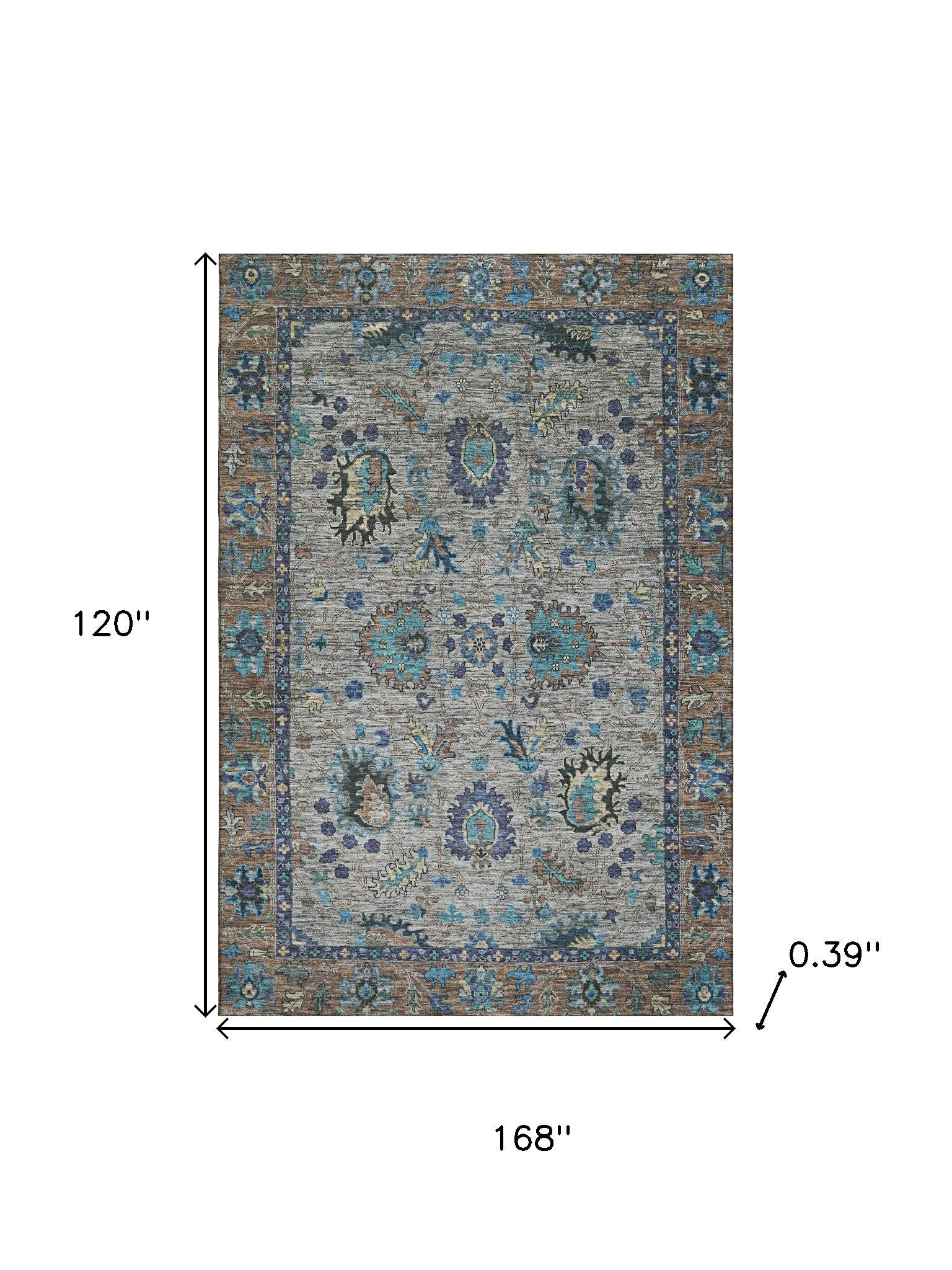 Add some artistry to your room with this 10-foot x 14-foot pewter and teal oriental washable area rug with uv protection. Ideal for spaces with kids and pets, this rug is stain resistant to help repel dirt and spilled liquids. Built to last, this rug crafted from polyester fibers is known for its durability and long lasting appeal. Rugs are a great way to showcase your style, hide imperfections, warm your home and reduce noise. This larger sized, traditional styled rug is ready to create a focal point or statement piece in your room. 120.00-inch h x 168.00-inch w x 0.39-inch d.