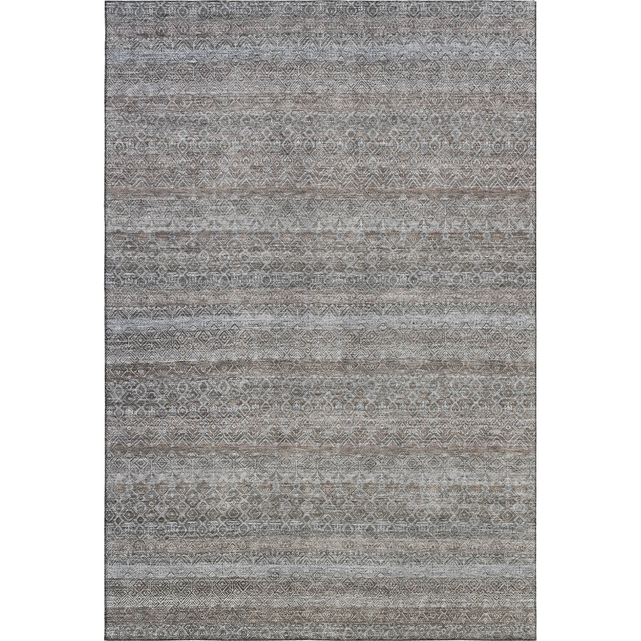 Set an inviting tone in your space with this 9-foot x 12-foot brown and beige striped washable area rug with uv protection. Ideal for spaces with kids and pets, this rug is stain resistant to help repel dirt and spilled liquids. Built to last, this rug crafted from polyester fibers is known for its durability and long lasting appeal. Rugs are a great way to showcase your style, hide imperfections, warm your home and reduce noise. This larger sized, transitional styled rug is ready to create a focal point or statement piece in your room. 108.00-inch h x 144.00-inch w x 0.39-inch d.