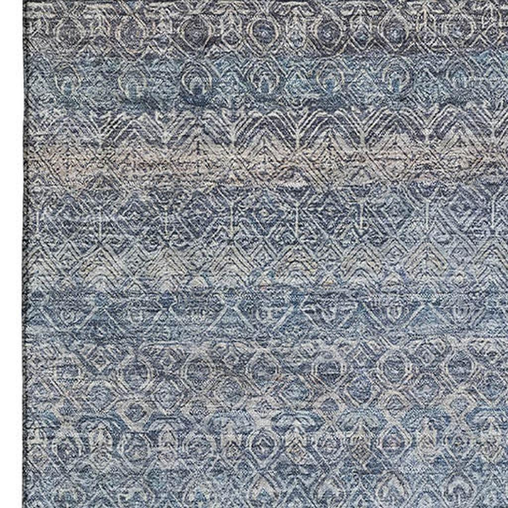 Add great coloration and comfortable texture to your space with this 5-foot x 8-foot blue and beige striped washable area rug with uv protection. Ideal for spaces with kids and pets, this rug is stain resistant to help repel dirt and spilled liquids. Built to last, this rug crafted from polyester fibers is known for its durability and long lasting appeal. Rugs are a great way to showcase your style, hide imperfections, warm your home and reduce noise. This larger sized, transitional styled rug is ready to create a focal point or statement piece in your room. 60.00-inch h x 90.00-inch w x 0.39-inch d.