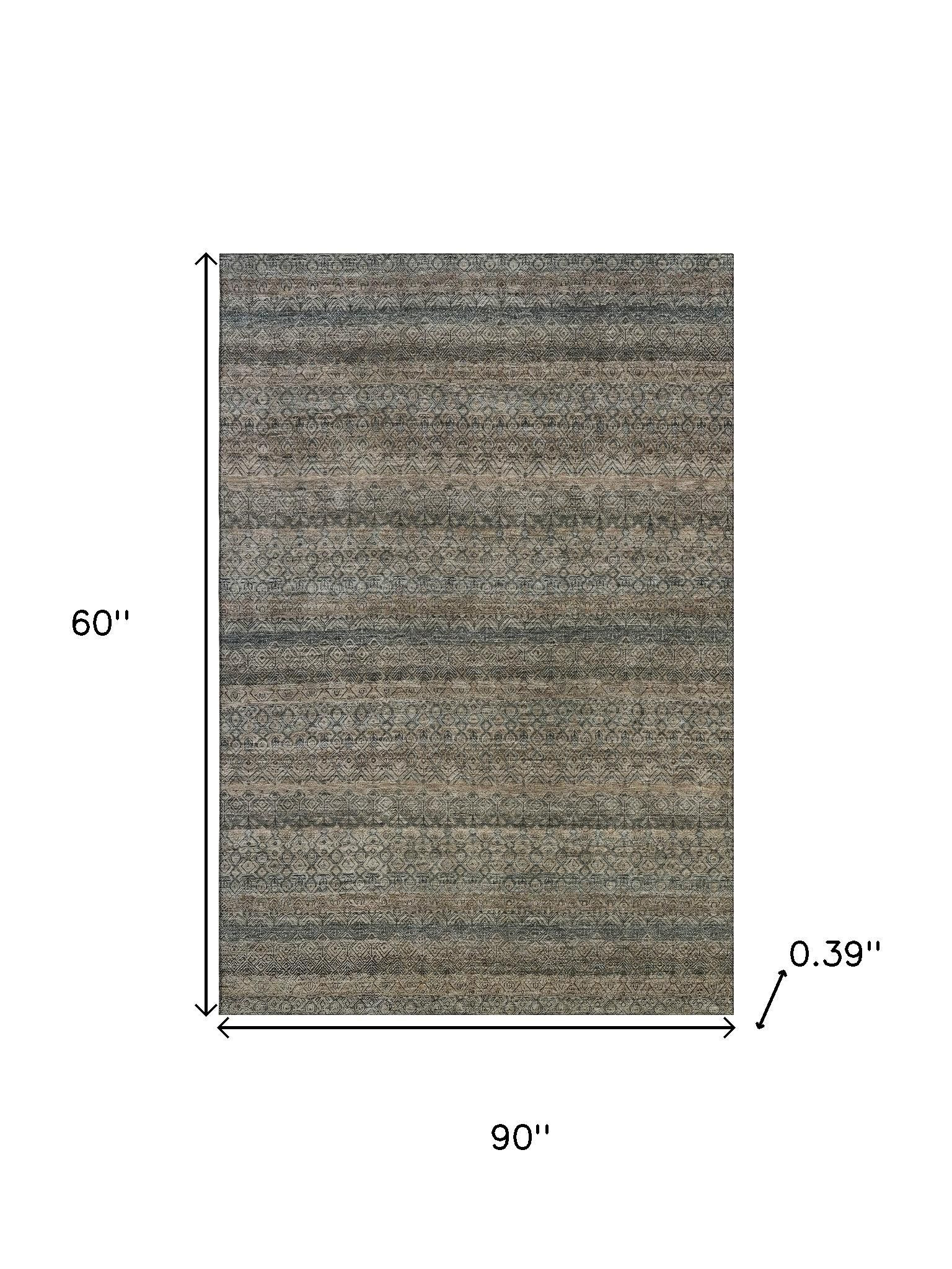 This 5-foot x 8-foot chocolate and gray striped washable area rug with uv protection, is a great way to add warmth to a room. Ideal for spaces with kids and pets, this rug is stain resistant to help repel dirt and spilled liquids. Built to last, this rug crafted from polyester fibers is known for its durability and long lasting appeal. Rugs are a great way to showcase your style, hide imperfections, warm your home and reduce noise. This larger sized, transitional styled rug is ready to create a focal point or statement piece in your room. 60.00-inch h x 90.00-inch w x 0.39-inch d.