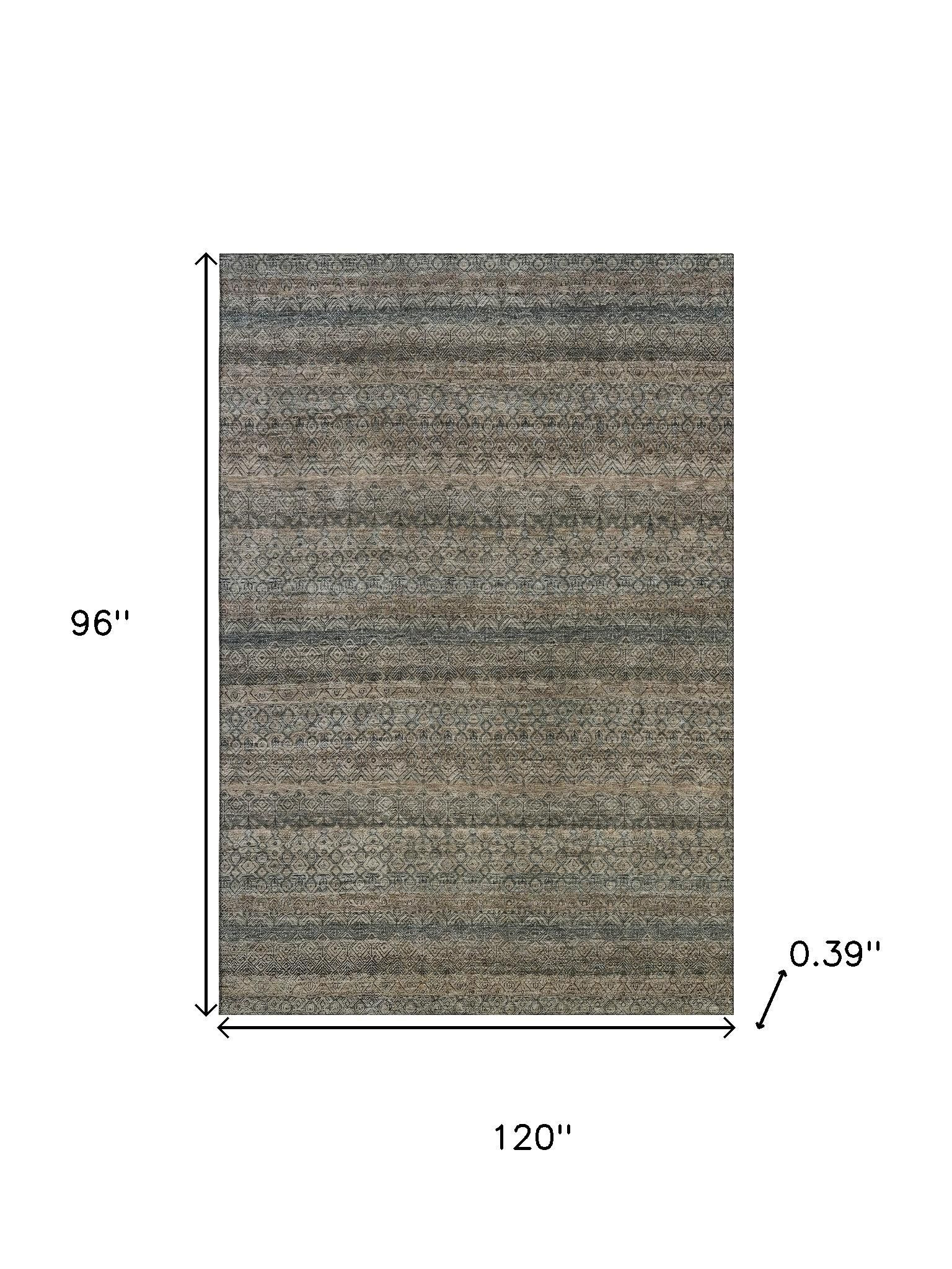This 8-foot x 10-foot chocolate and gray striped washable area rug with uv protection, is a great way to add warmth to a room. Ideal for spaces with kids and pets, this rug is stain resistant to help repel dirt and spilled liquids. Built to last, this rug crafted from polyester fibers is known for its durability and long lasting appeal. Rugs are a great way to showcase your style, hide imperfections, warm your home and reduce noise. This larger sized, transitional styled rug is ready to create a focal point or statement piece in your room. 96.00-inch h x 120.00-inch w x 0.39-inch d.