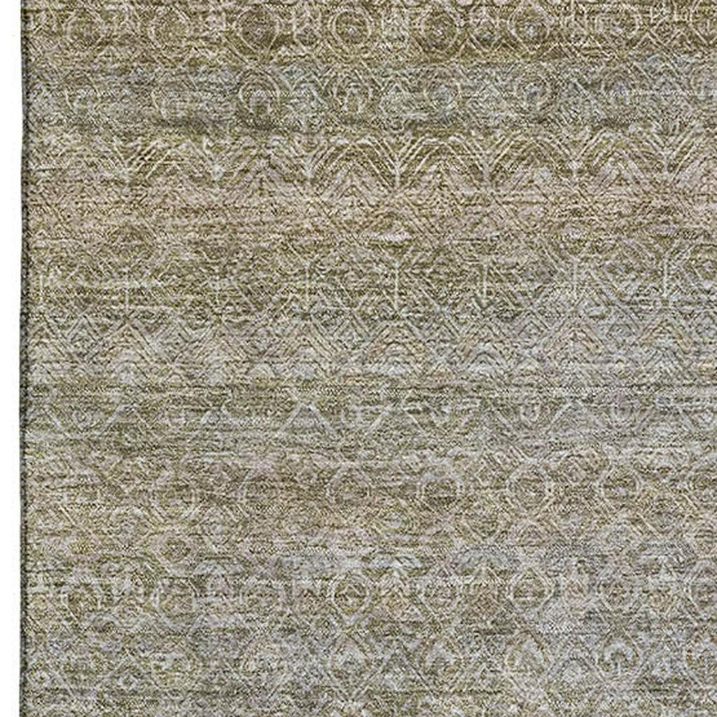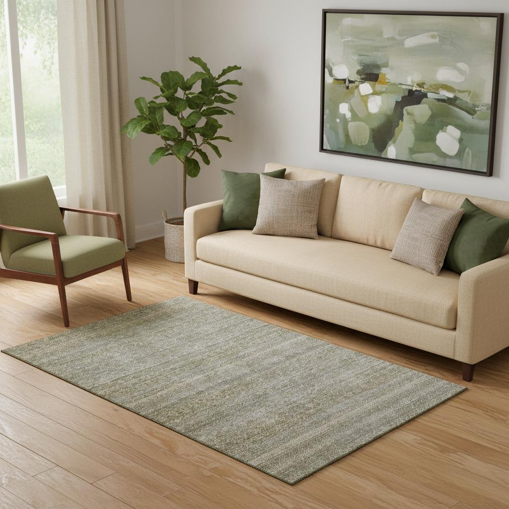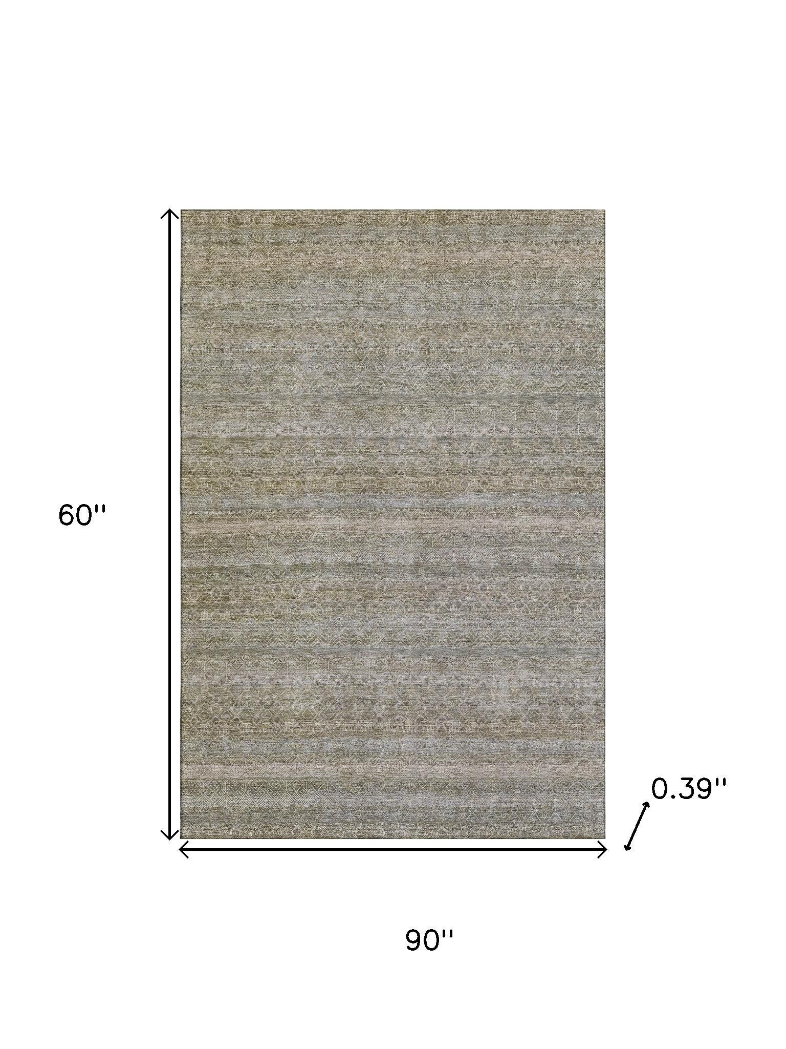 Add some artistry to your room with this 5-foot x 8-foot khaki and beige striped washable area rug with uv protection. Ideal for spaces with kids and pets, this rug is stain resistant to help repel dirt and spilled liquids. Built to last, this rug crafted from polyester fibers is known for its durability and long lasting appeal. Rugs are a great way to showcase your style, hide imperfections, warm your home and reduce noise. This larger sized, transitional styled rug is ready to create a focal point or statement piece in your room. 60.00-inch h x 90.00-inch w x 0.39-inch d.