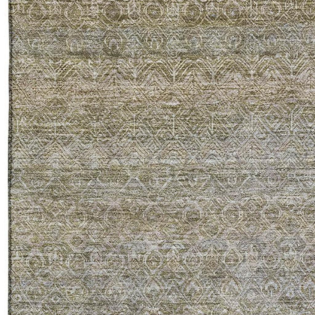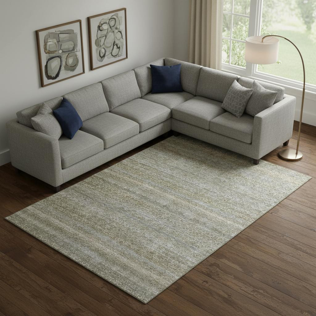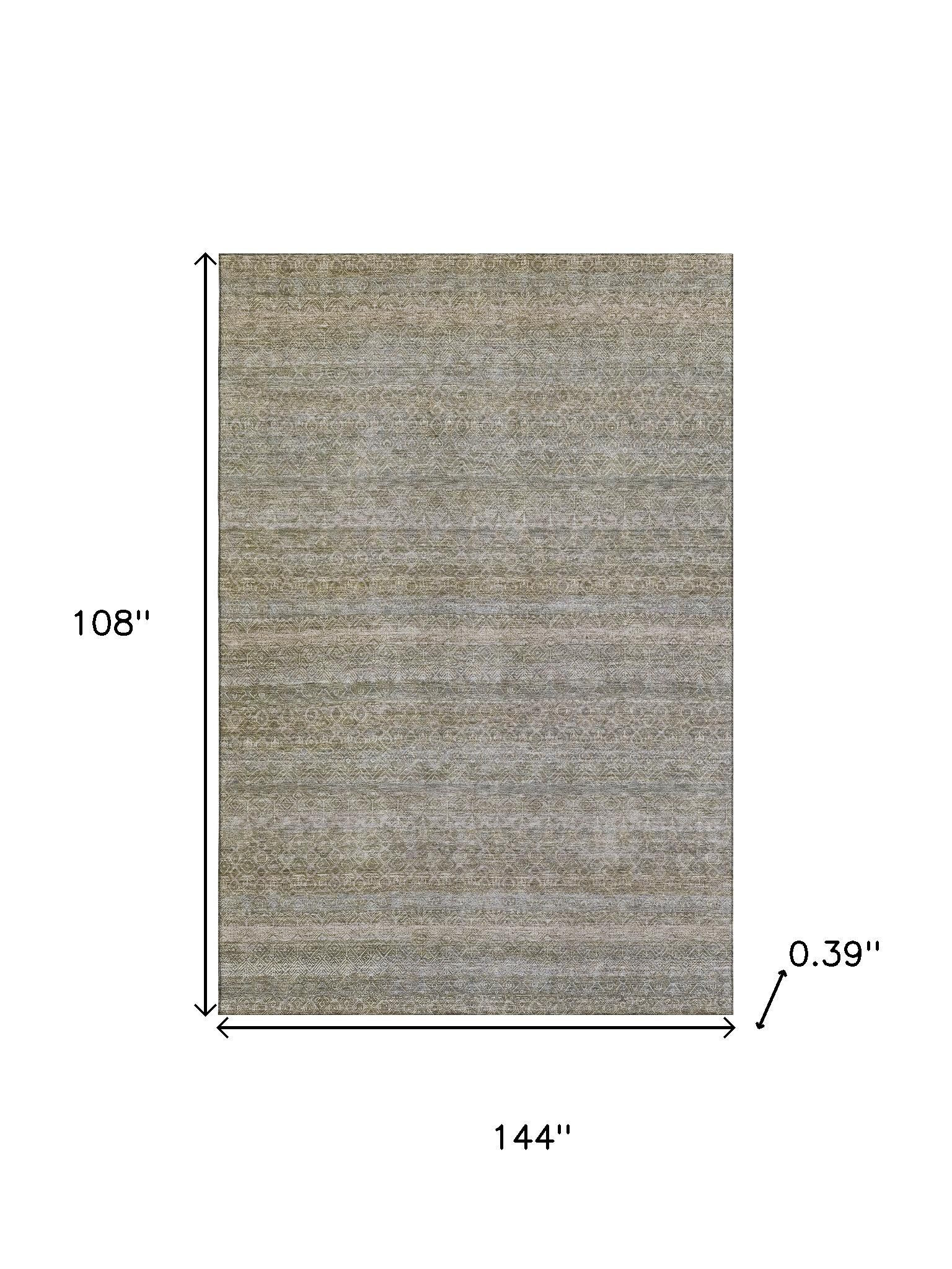 Set an inviting tone in your space with this 9-foot x 12-foot khaki and beige striped washable area rug with uv protection. Ideal for spaces with kids and pets, this rug is stain resistant to help repel dirt and spilled liquids. Built to last, this rug crafted from polyester fibers is known for its durability and long lasting appeal. Rugs are a great way to showcase your style, hide imperfections, warm your home and reduce noise. This larger sized, transitional styled rug is ready to create a focal point or statement piece in your room. 108.00-inch h x 144.00-inch w x 0.39-inch d.