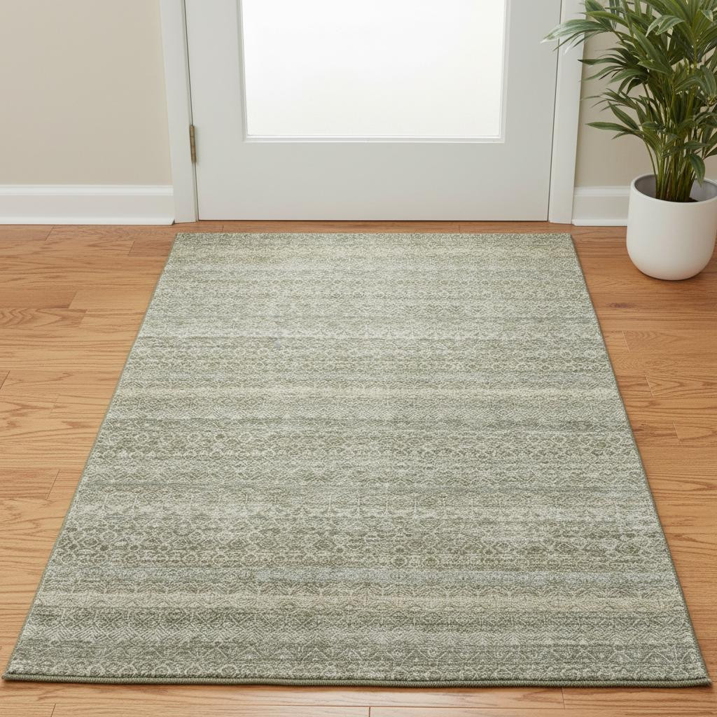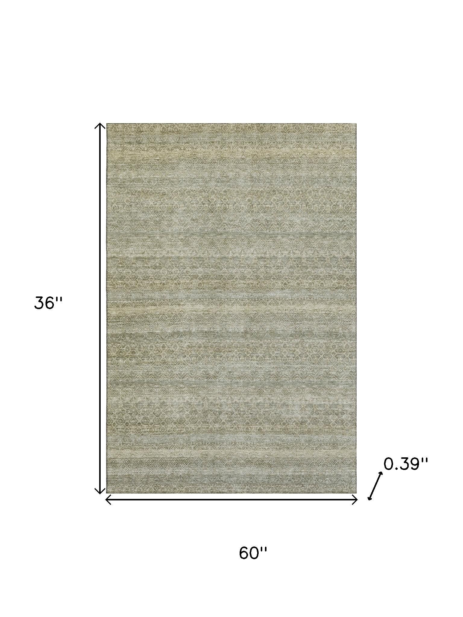 Add great coloration and comfortable texture to your space with this 3-foot x 5-foot linen and beige striped washable area rug with uv protection. Ideal for spaces with kids and pets, this rug is stain resistant to help repel dirt and spilled liquids. Built to last, this rug crafted from polyester fibers is known for its durability and long lasting appeal. Rugs are a great way to showcase your style, hide imperfections, warm your home and reduce noise. This smaller sized, transitional styled rug is just what you need for your walkway, bedside, in front of door, cabinet, refrigerator, or chair. 36.00-inch h x 60.00-inch w x 0.39-inch d.