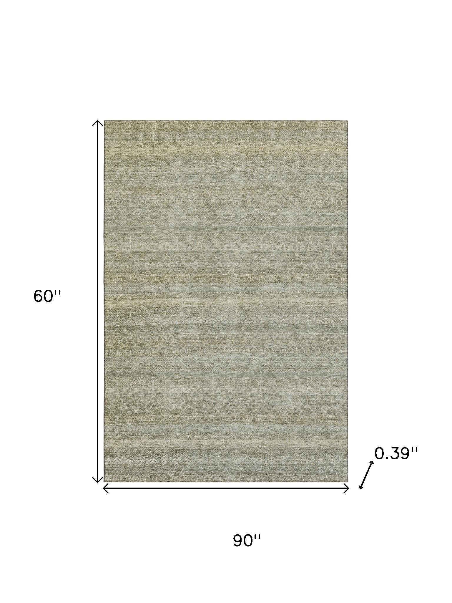 Add great coloration and comfortable texture to your space with this 5-foot x 8-foot linen and beige striped washable area rug with uv protection. Ideal for spaces with kids and pets, this rug is stain resistant to help repel dirt and spilled liquids. Built to last, this rug crafted from polyester fibers is known for its durability and long lasting appeal. Rugs are a great way to showcase your style, hide imperfections, warm your home and reduce noise. This larger sized, transitional styled rug is ready to create a focal point or statement piece in your room. 60.00-inch h x 90.00-inch w x 0.39-inch d.