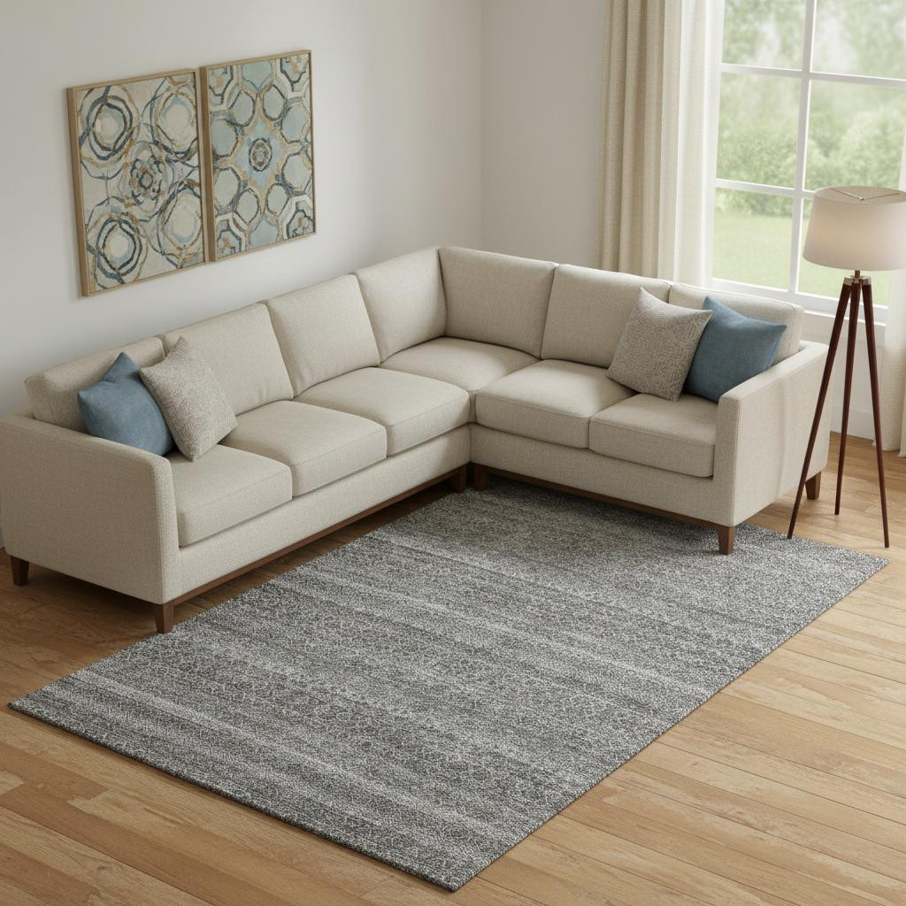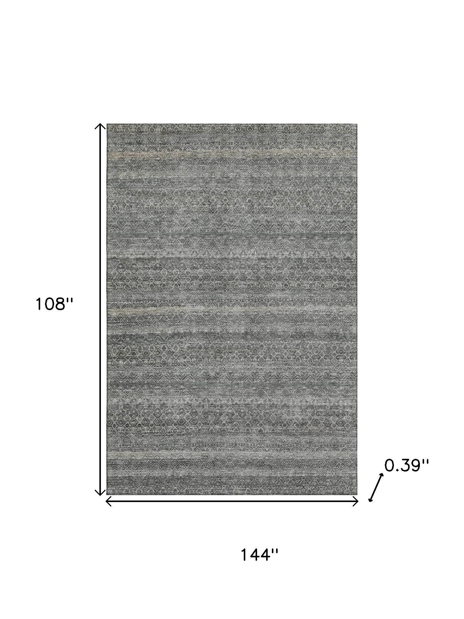 Add great coloration and comfortable texture to your space with this 9-foot x 12-foot pewter and gray striped washable area rug with uv protection. Ideal for spaces with kids and pets, this rug is stain resistant to help repel dirt and spilled liquids. Built to last, this rug crafted from polyester fibers is known for its durability and long lasting appeal. Rugs are a great way to showcase your style, hide imperfections, warm your home and reduce noise. This larger sized, transitional styled rug is ready to create a focal point or statement piece in your room. 108.00-inch h x 144.00-inch w x 0.39-inch d.
