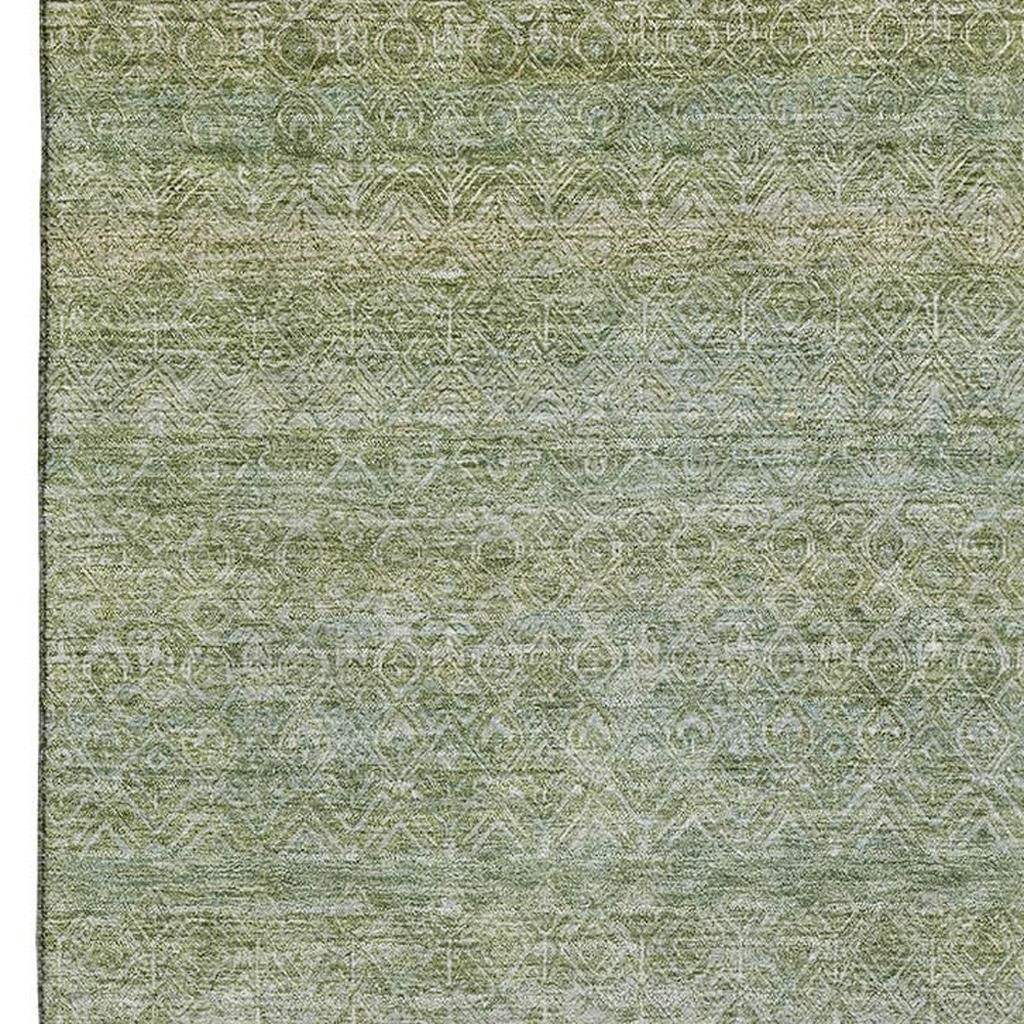 This 9-foot x 12-foot sage and gray striped washable area rug with uv protection, is a great way to add warmth to a room. Ideal for spaces with kids and pets, this rug is stain resistant to help repel dirt and spilled liquids. Built to last, this rug crafted from polyester fibers is known for its durability and long lasting appeal. Rugs are a great way to showcase your style, hide imperfections, warm your home and reduce noise. This larger sized, transitional styled rug is ready to create a focal point or statement piece in your room. 108.00-inch h x 144.00-inch w x 0.39-inch d.