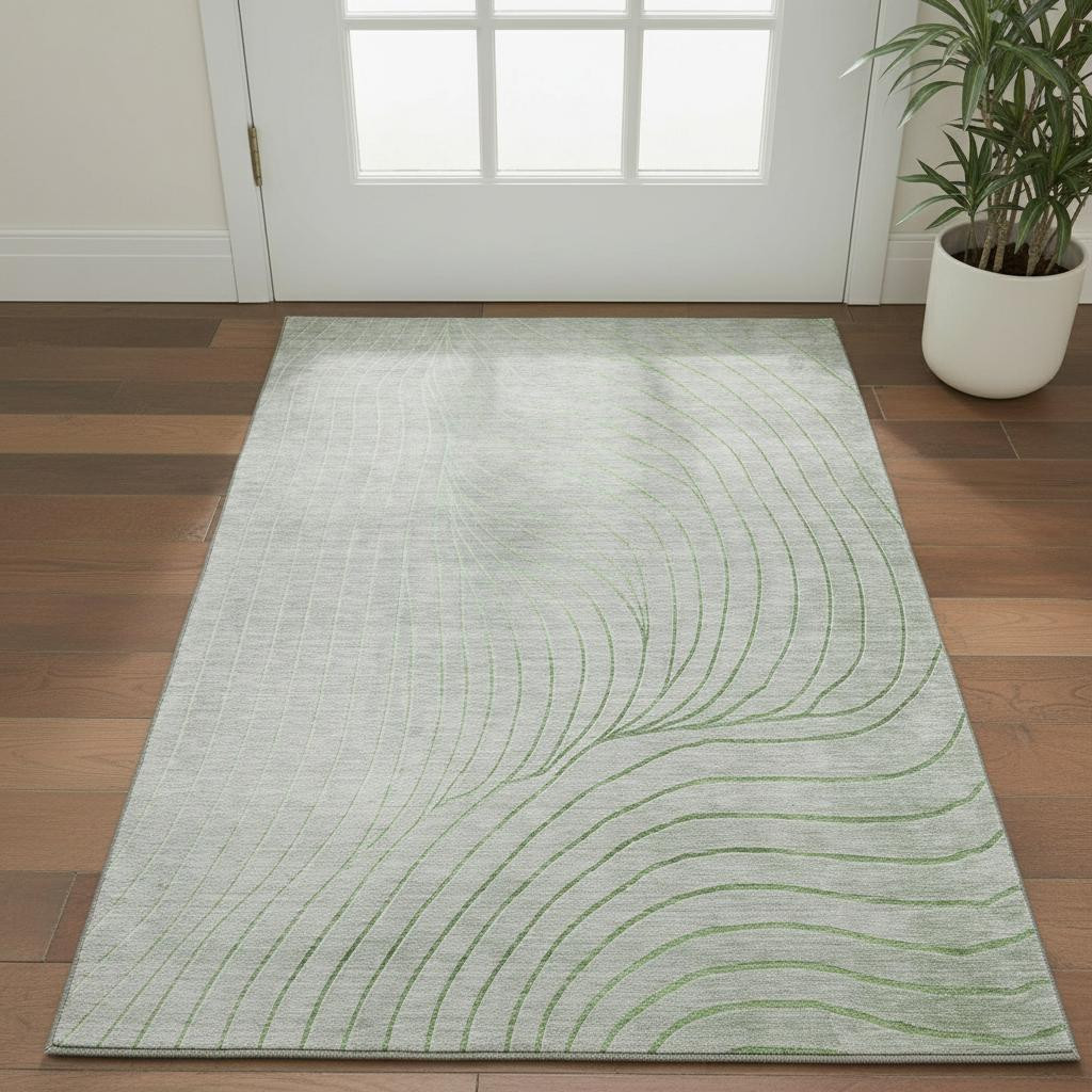 This 3-foot x 5-foot sage and silver abstract washable area rug with uv protection, is a great way to add warmth to a room. Ideal for spaces with kids and pets, this rug is stain resistant to help repel dirt and spilled liquids. Built to last, this rug crafted from polyester fibers is known for its durability and long lasting appeal. Rugs are a great way to showcase your style, hide imperfections, warm your home and reduce noise. This smaller sized, transitional styled rug is just what you need for your walkway, bedside, in front of door, cabinet, refrigerator, or chair. 36.00-inch h x 60.00-inch w x 0.39-inch d.