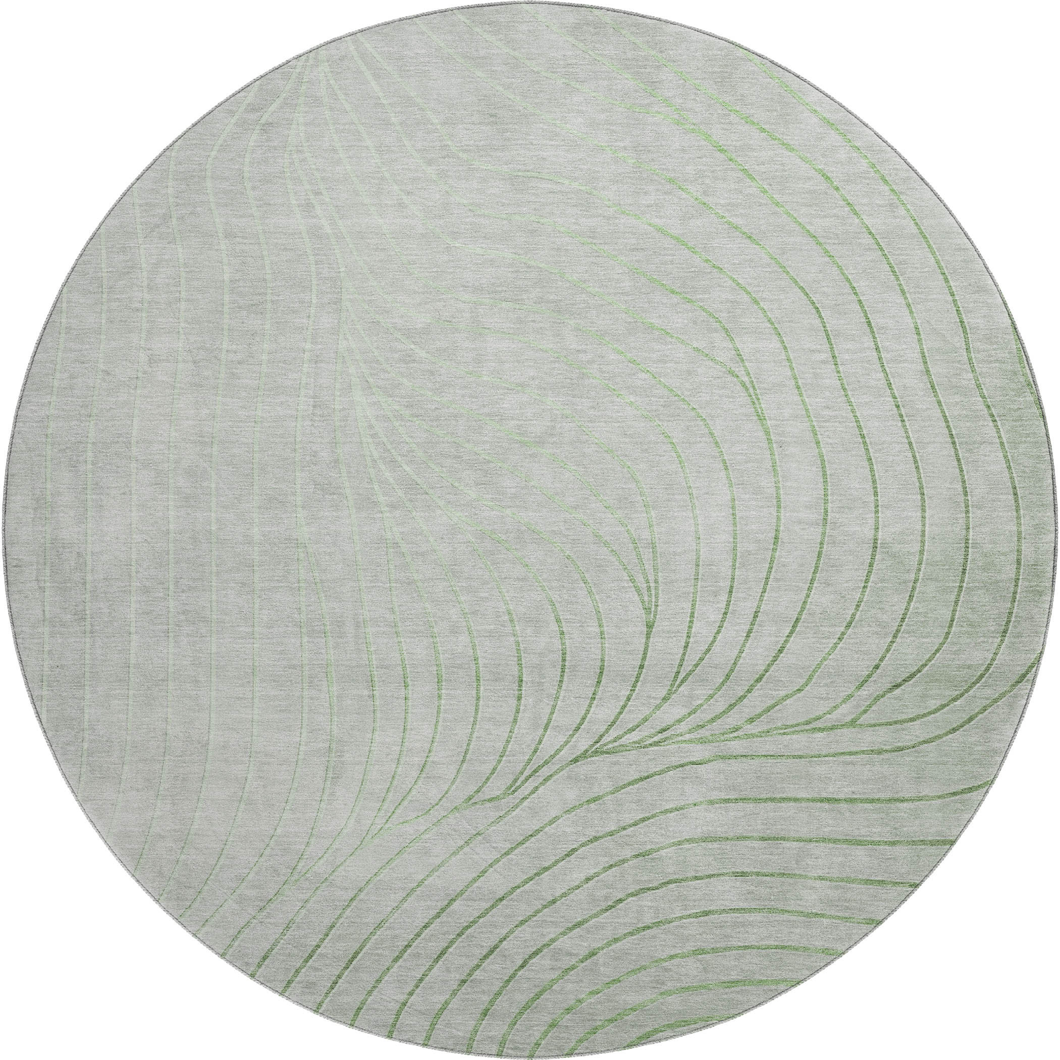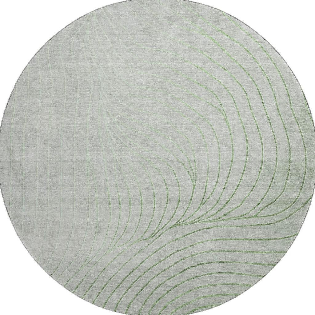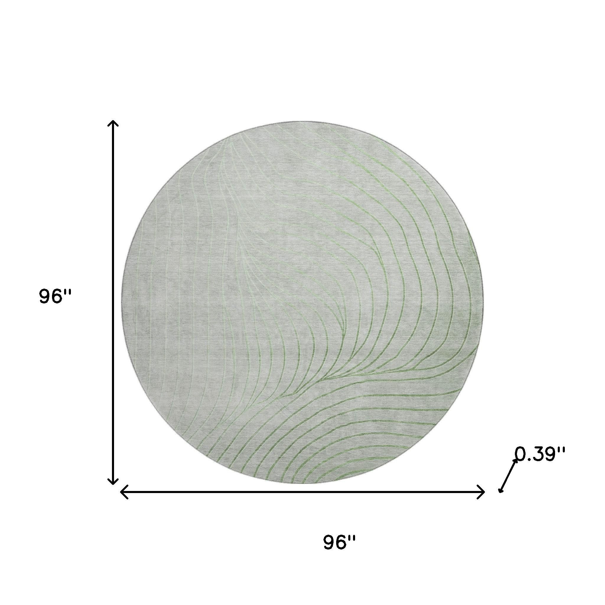 Add great coloration and comfortable texture to your space with this 8-foot sage and silver abstract washable round rug with uv protection. Ideal for spaces with kids and pets, this rug is stain resistant to help repel dirt and spilled liquids. Built to last, this rug crafted from polyester fibers is known for its durability and long lasting appeal. Rugs are a great way to showcase your style, hide imperfections, warm your home and reduce noise. This larger sized, transitional styled rug is ready to create a focal point or statement piece in your room. 96.00-inch h x 96.00-inch w x 0.39-inch d.