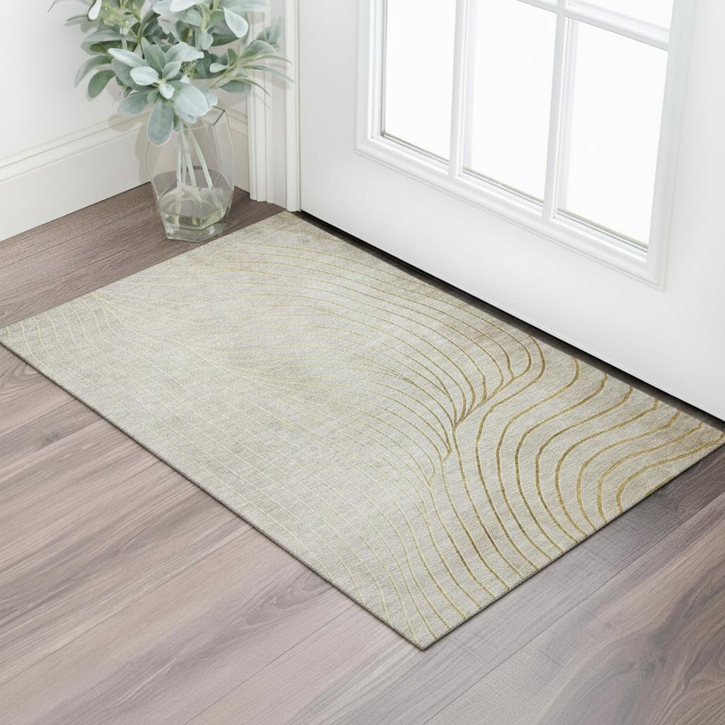 Set an inviting tone in your space with this 3-foot x 5-foot beige and brown abstract washable area rug with uv protection. Ideal for spaces with kids and pets, this rug is stain resistant to help repel dirt and spilled liquids. Built to last, this rug crafted from polyester fibers is known for its durability and long lasting appeal. Rugs are a great way to showcase your style, hide imperfections, warm your home and reduce noise. This smaller sized, transitional styled rug is just what you need for your walkway, bedside, in front of door, cabinet, refrigerator, or chair. 36.00-inch h x 60.00-inch w x 0.39-inch d.