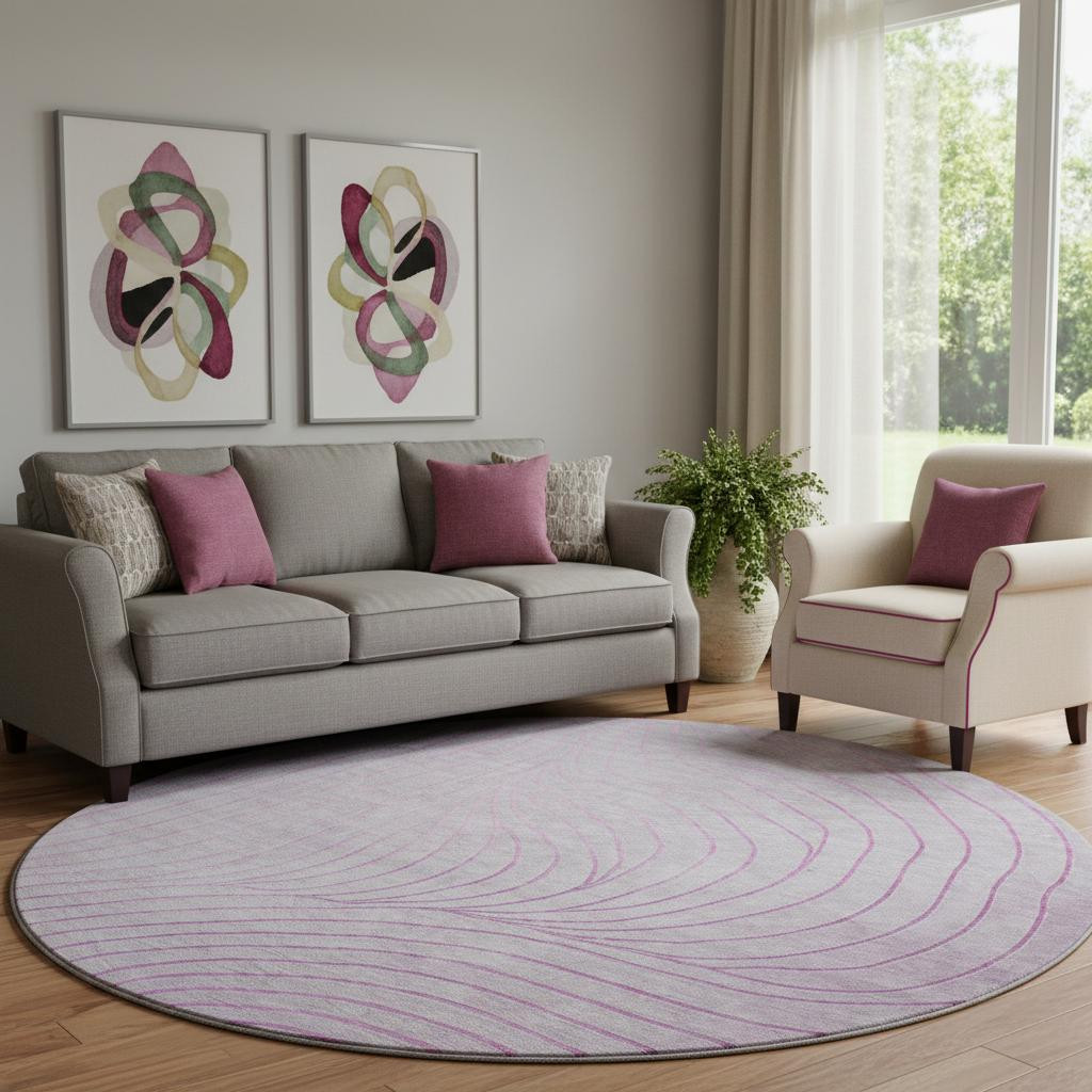 Set an inviting tone in your space with this 8-foot blush and linen abstract washable round rug with uv protection. Ideal for spaces with kids and pets, this rug is stain resistant to help repel dirt and spilled liquids. Built to last, this rug crafted from polyester fibers is known for its durability and long lasting appeal. Rugs are a great way to showcase your style, hide imperfections, warm your home and reduce noise. This larger sized, transitional styled rug is ready to create a focal point or statement piece in your room. 96.00-inch h x 96.00-inch w x 0.39-inch d.