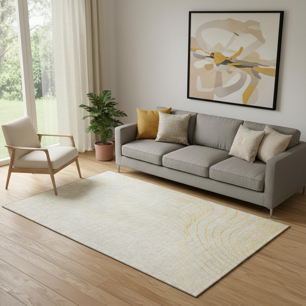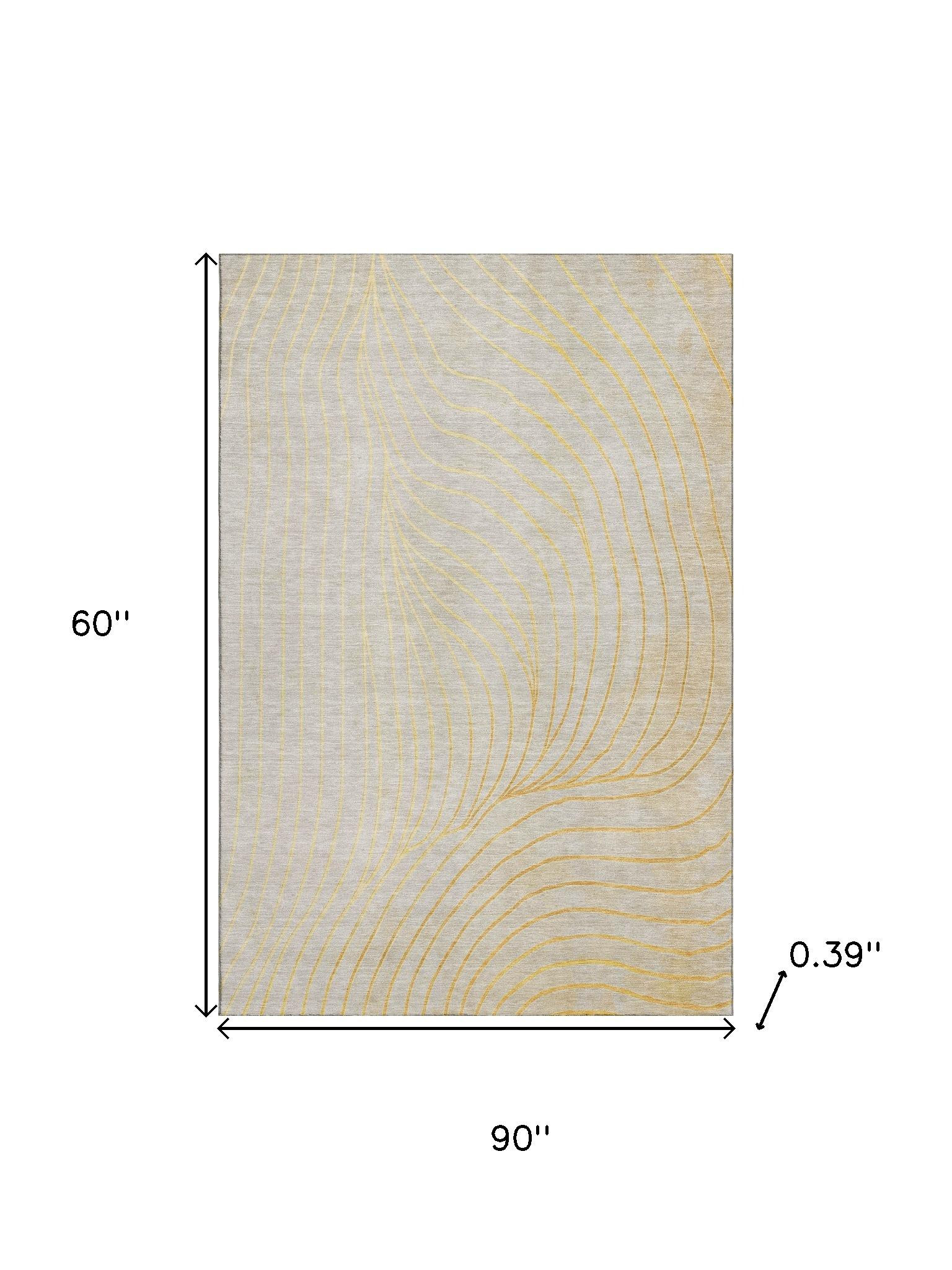 Set an inviting tone in your space with this 5-foot x 8-foot gold and silver abstract washable area rug with uv protection. Ideal for spaces with kids and pets, this rug is stain resistant to help repel dirt and spilled liquids. Built to last, this rug crafted from polyester fibers is known for its durability and long lasting appeal. Rugs are a great way to showcase your style, hide imperfections, warm your home and reduce noise. This larger sized, transitional styled rug is ready to create a focal point or statement piece in your room. 60.00-inch h x 90.00-inch w x 0.39-inch d.