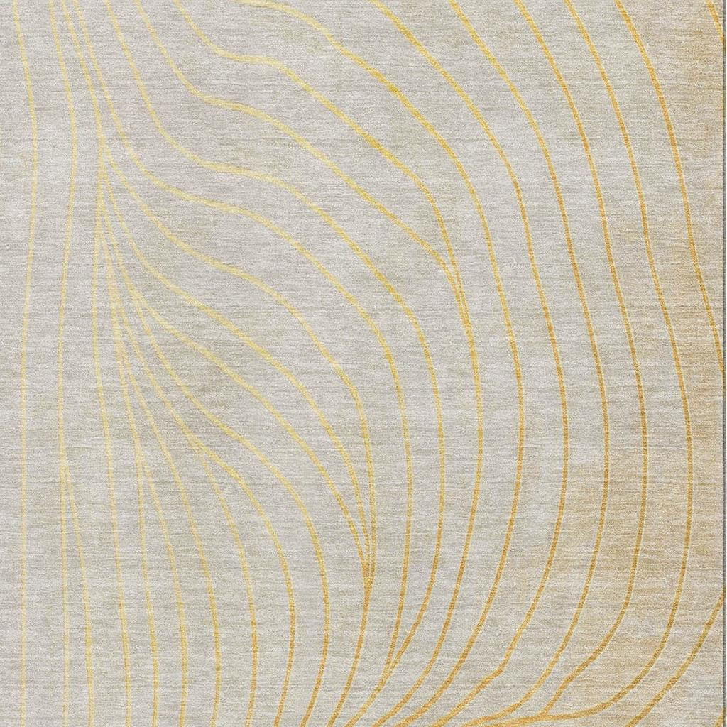 Add some artistry to your room with this 8-foot x 10-foot gold and silver abstract washable area rug with uv protection. Ideal for spaces with kids and pets, this rug is stain resistant to help repel dirt and spilled liquids. Built to last, this rug crafted from polyester fibers is known for its durability and long lasting appeal. Rugs are a great way to showcase your style, hide imperfections, warm your home and reduce noise. This larger sized, transitional styled rug is ready to create a focal point or statement piece in your room. 96.00-inch h x 120.00-inch w x 0.39-inch d.