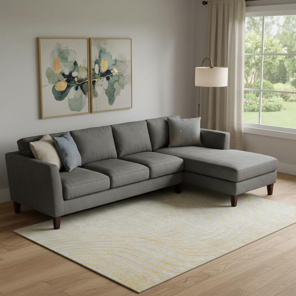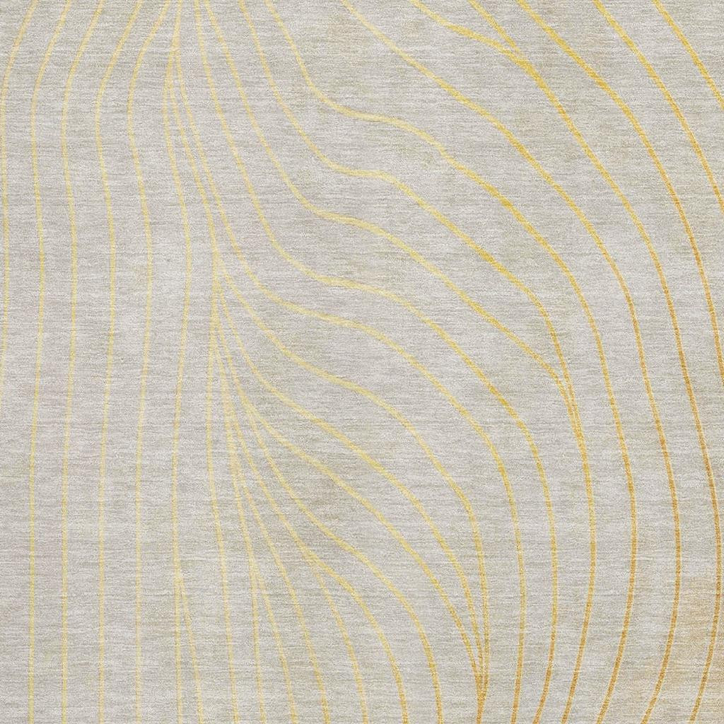 This 9-foot x 12-foot gold and silver abstract washable area rug with uv protection, is a great way to add warmth to a room. Ideal for spaces with kids and pets, this rug is stain resistant to help repel dirt and spilled liquids. Built to last, this rug crafted from polyester fibers is known for its durability and long lasting appeal. Rugs are a great way to showcase your style, hide imperfections, warm your home and reduce noise. This larger sized, transitional styled rug is ready to create a focal point or statement piece in your room. 108.00-inch h x 144.00-inch w x 0.39-inch d.