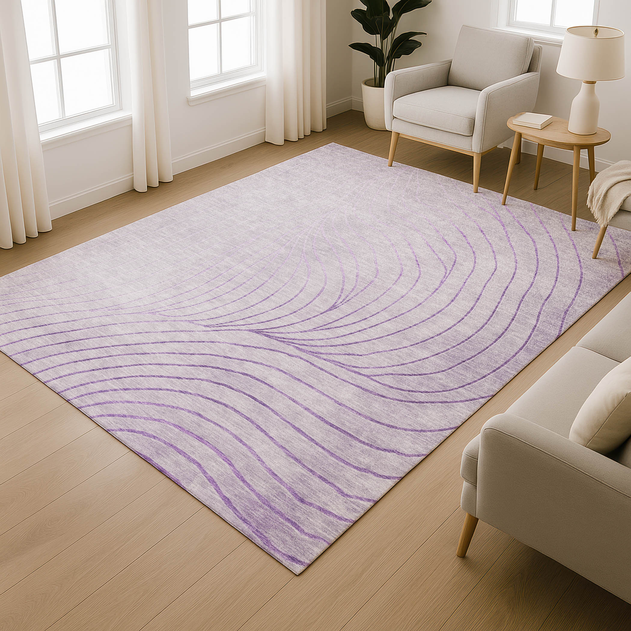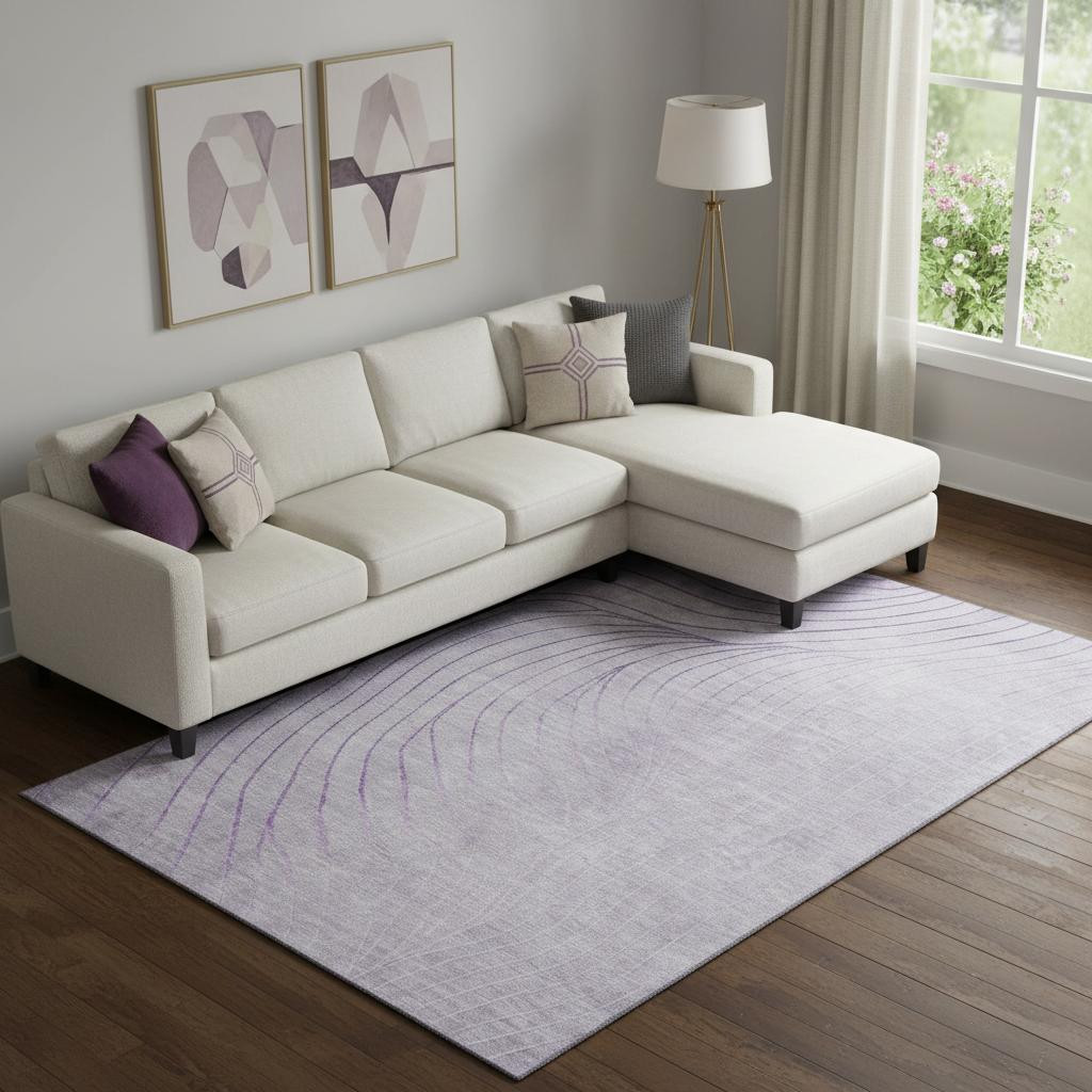 Set an inviting tone in your space with this 8-foot x 10-foot lavender and silver abstract washable area rug with uv protection. Ideal for spaces with kids and pets, this rug is stain resistant to help repel dirt and spilled liquids. Built to last, this rug crafted from polyester fibers is known for its durability and long lasting appeal. Rugs are a great way to showcase your style, hide imperfections, warm your home and reduce noise. This larger sized, transitional styled rug is ready to create a focal point or statement piece in your room. 96.00-inch h x 120.00-inch w x 0.39-inch d.