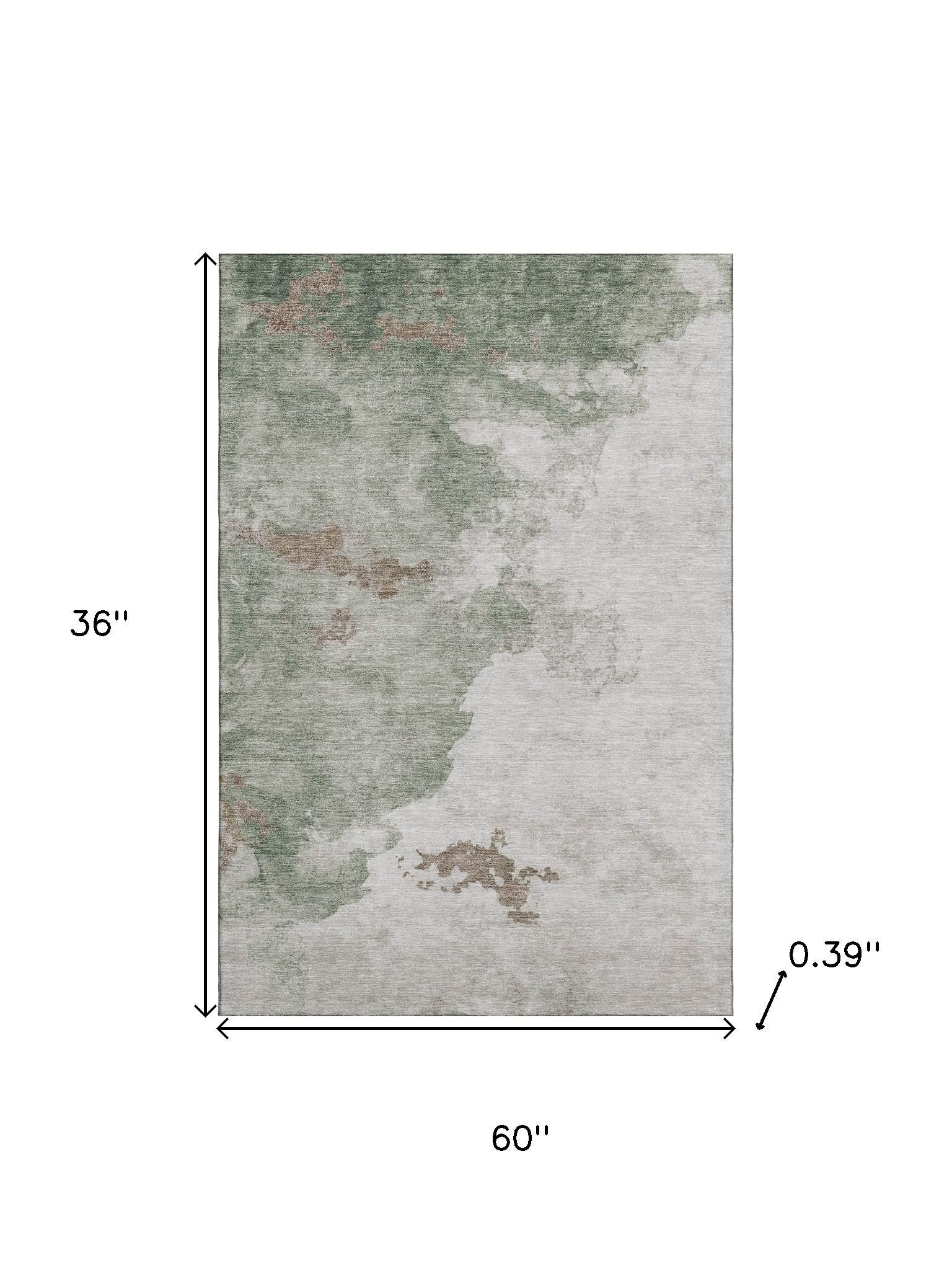 Set an inviting tone in your space with this 3-foot x 5-foot sage and linen abstract washable area rug with uv protection. Ideal for spaces with kids and pets, this rug is stain resistant to help repel dirt and spilled liquids. Built to last, this rug crafted from polyester fibers is known for its durability and long lasting appeal. Rugs are a great way to showcase your style, hide imperfections, warm your home and reduce noise. This smaller sized, transitional styled rug is just what you need for your walkway, bedside, in front of door, cabinet, refrigerator, or chair. 36.00-inch h x 60.00-inch w x 0.39-inch d.