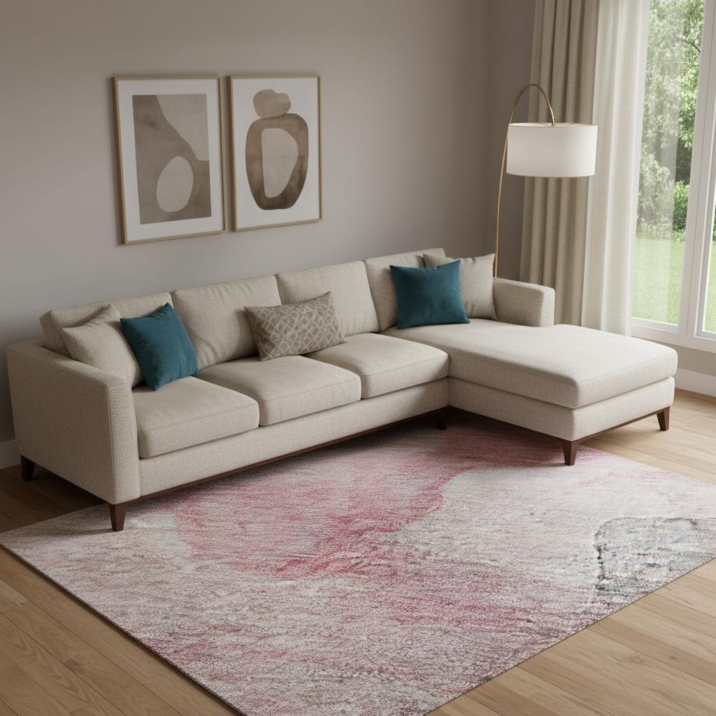 Add some artistry to your room with this 9-foot x 12-foot blush and gray abstract washable area rug with uv protection. Ideal for spaces with kids and pets, this rug is stain resistant to help repel dirt and spilled liquids. Built to last, this rug crafted from polyester fibers is known for its durability and long lasting appeal. Rugs are a great way to showcase your style, hide imperfections, warm your home and reduce noise. This larger sized, transitional styled rug is ready to create a focal point or statement piece in your room. 108.00-inch h x 144.00-inch w x 0.39-inch d.