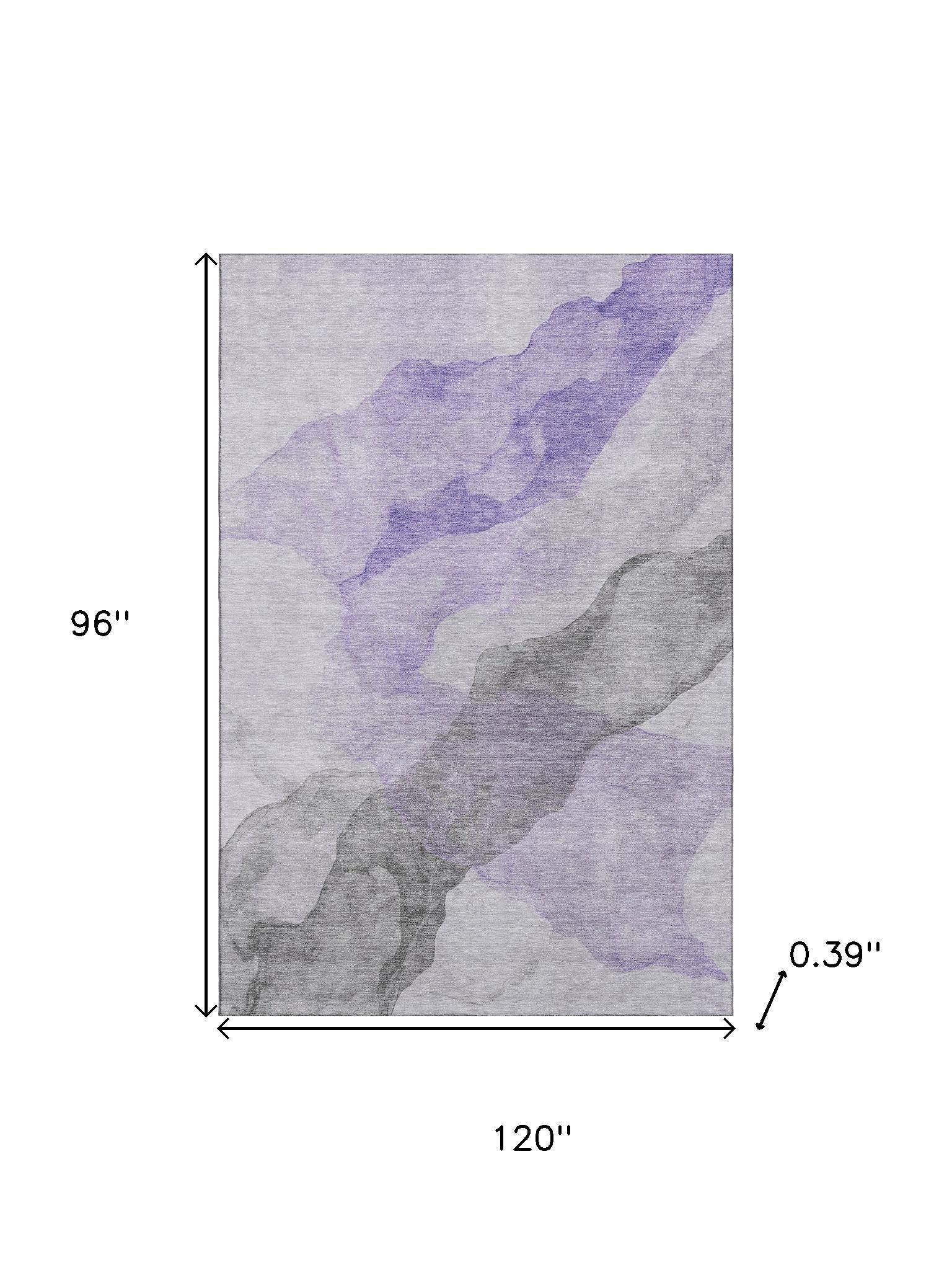 Set an inviting tone in your space with this 8-foot x 10-foot lavender and gray abstract washable area rug with uv protection. Ideal for spaces with kids and pets, this rug is stain resistant to help repel dirt and spilled liquids. Built to last, this rug crafted from polyester fibers is known for its durability and long lasting appeal. Rugs are a great way to showcase your style, hide imperfections, warm your home and reduce noise. This larger sized, transitional styled rug is ready to create a focal point or statement piece in your room. 96.00-inch h x 120.00-inch w x 0.39-inch d.