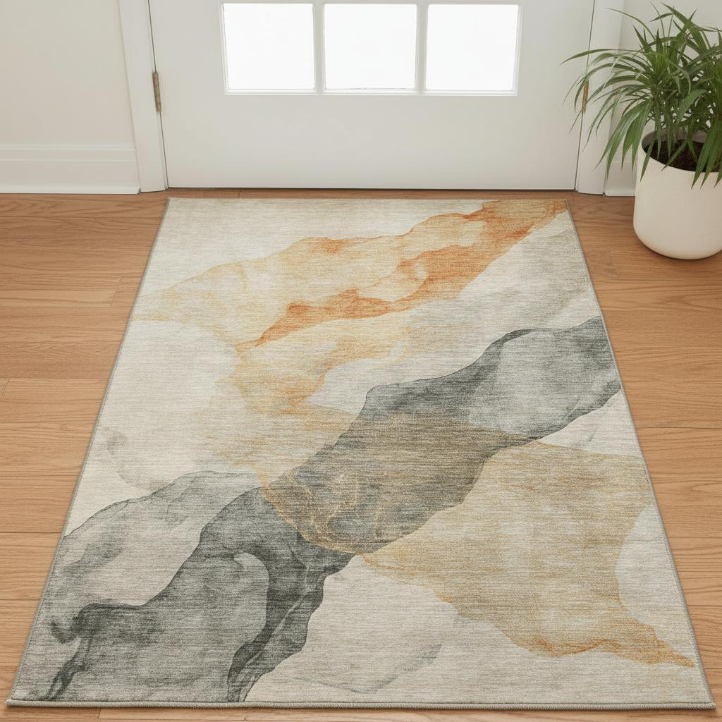 Add great coloration and comfortable texture to your space with this 3-foot x 5-foot orange and gray abstract washable area rug with uv protection. Ideal for spaces with kids and pets, this rug is stain resistant to help repel dirt and spilled liquids. Built to last, this rug crafted from polyester fibers is known for its durability and long lasting appeal. Rugs are a great way to showcase your style, hide imperfections, warm your home and reduce noise. This smaller sized, transitional styled rug is just what you need for your walkway, bedside, in front of door, cabinet, refrigerator, or chair. 36.00-inch h x 60.00-inch w x 0.39-inch d.