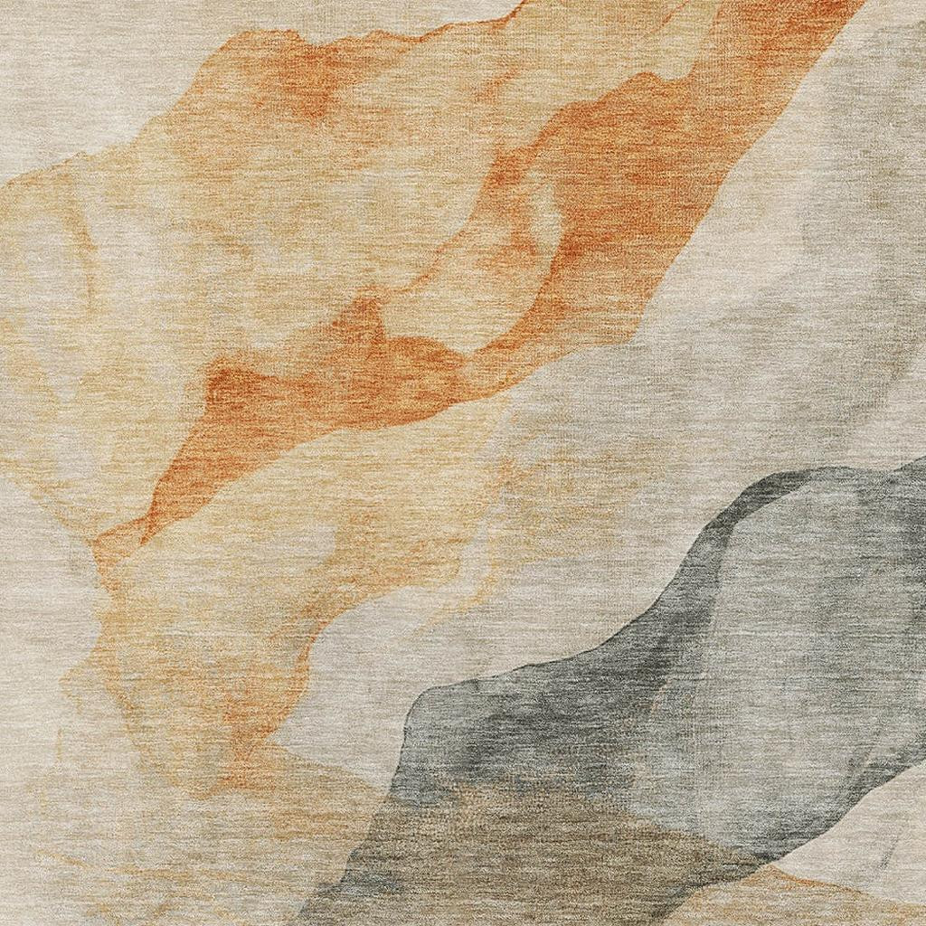 This 10-foot x 14-foot orange and gray abstract washable area rug with uv protection, is a great way to add warmth to a room. Ideal for spaces with kids and pets, this rug is stain resistant to help repel dirt and spilled liquids. Built to last, this rug crafted from polyester fibers is known for its durability and long lasting appeal. Rugs are a great way to showcase your style, hide imperfections, warm your home and reduce noise. This larger sized, transitional styled rug is ready to create a focal point or statement piece in your room. 120.00-inch h x 168.00-inch w x 0.39-inch d.