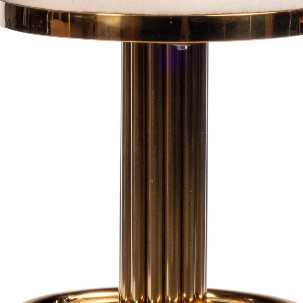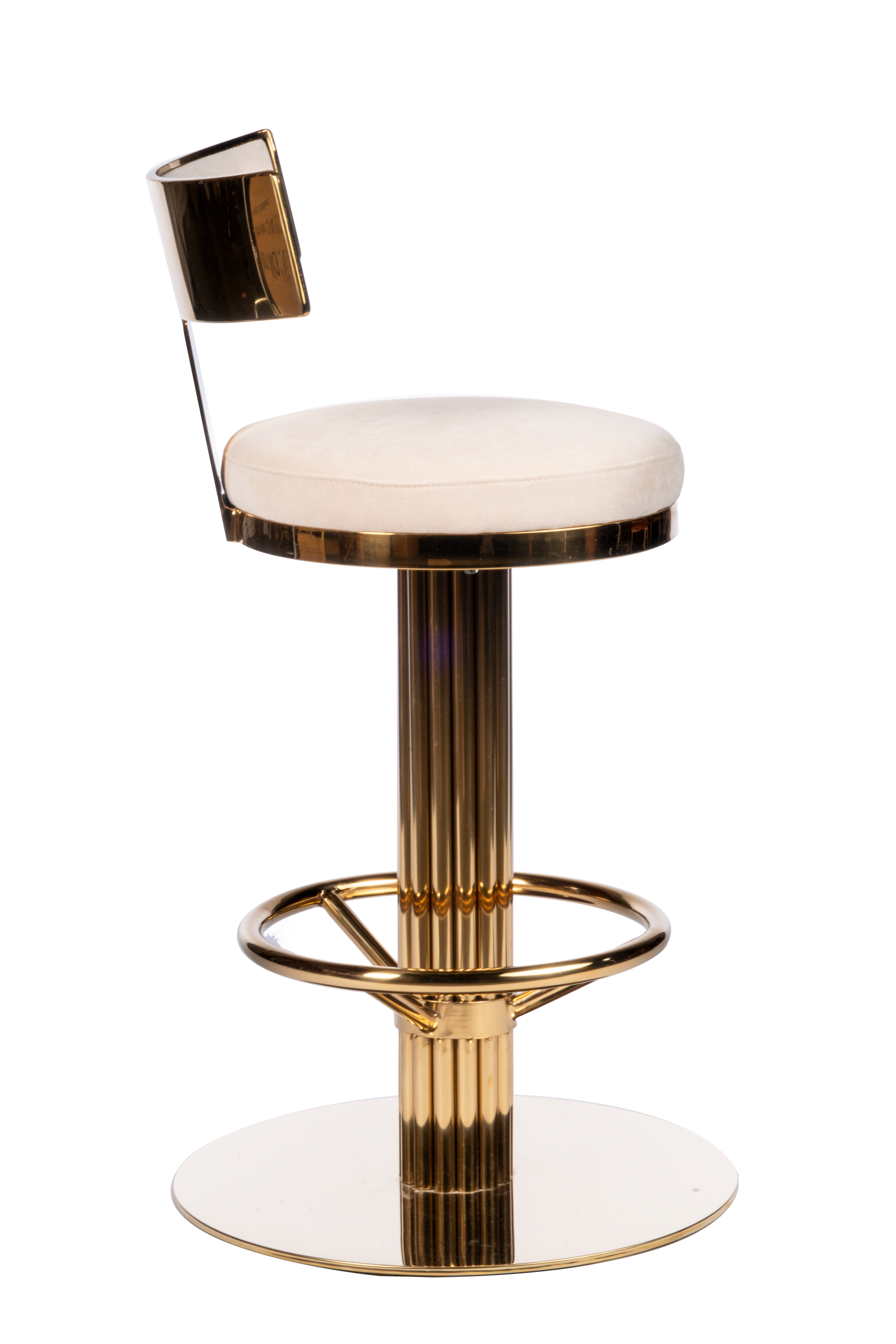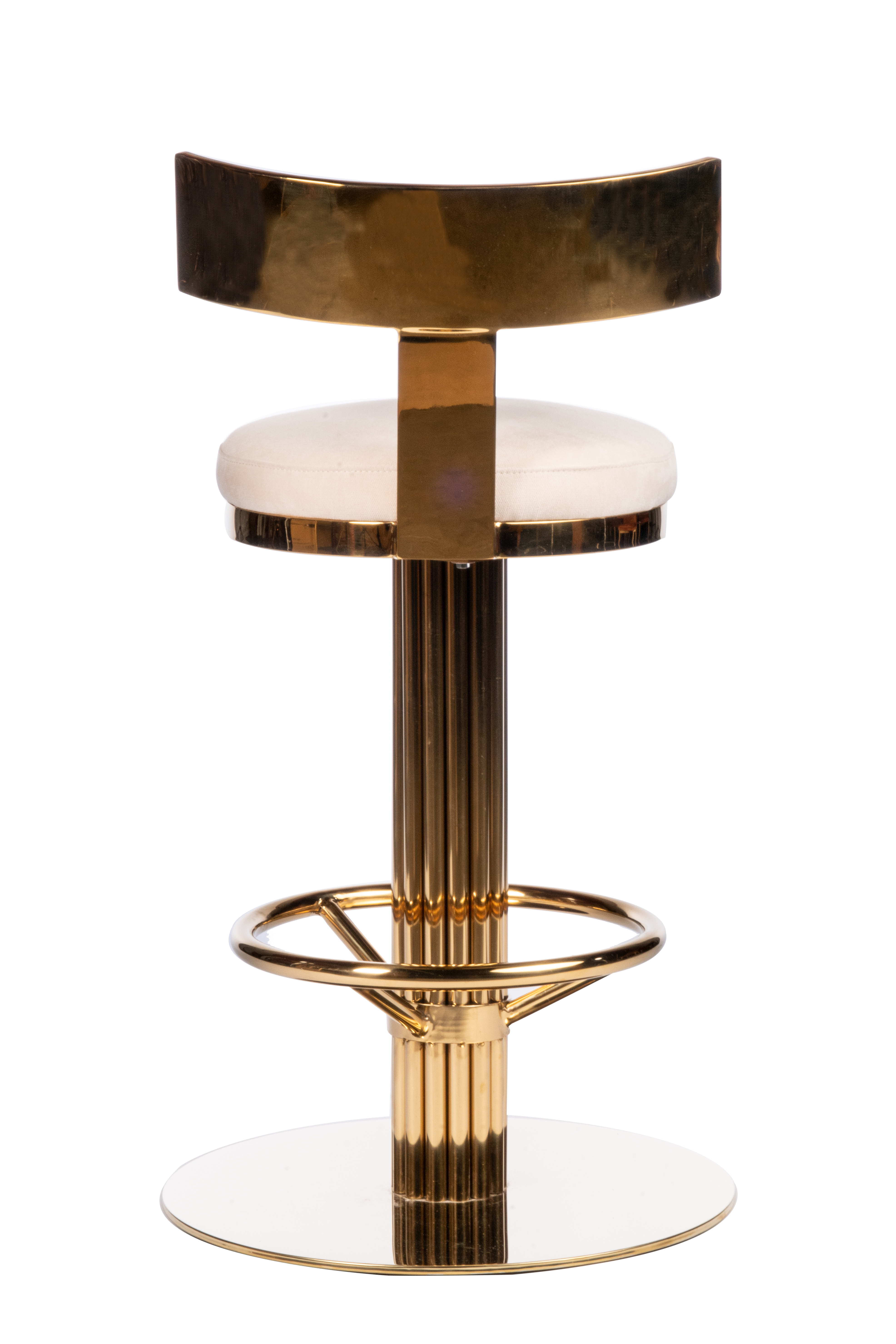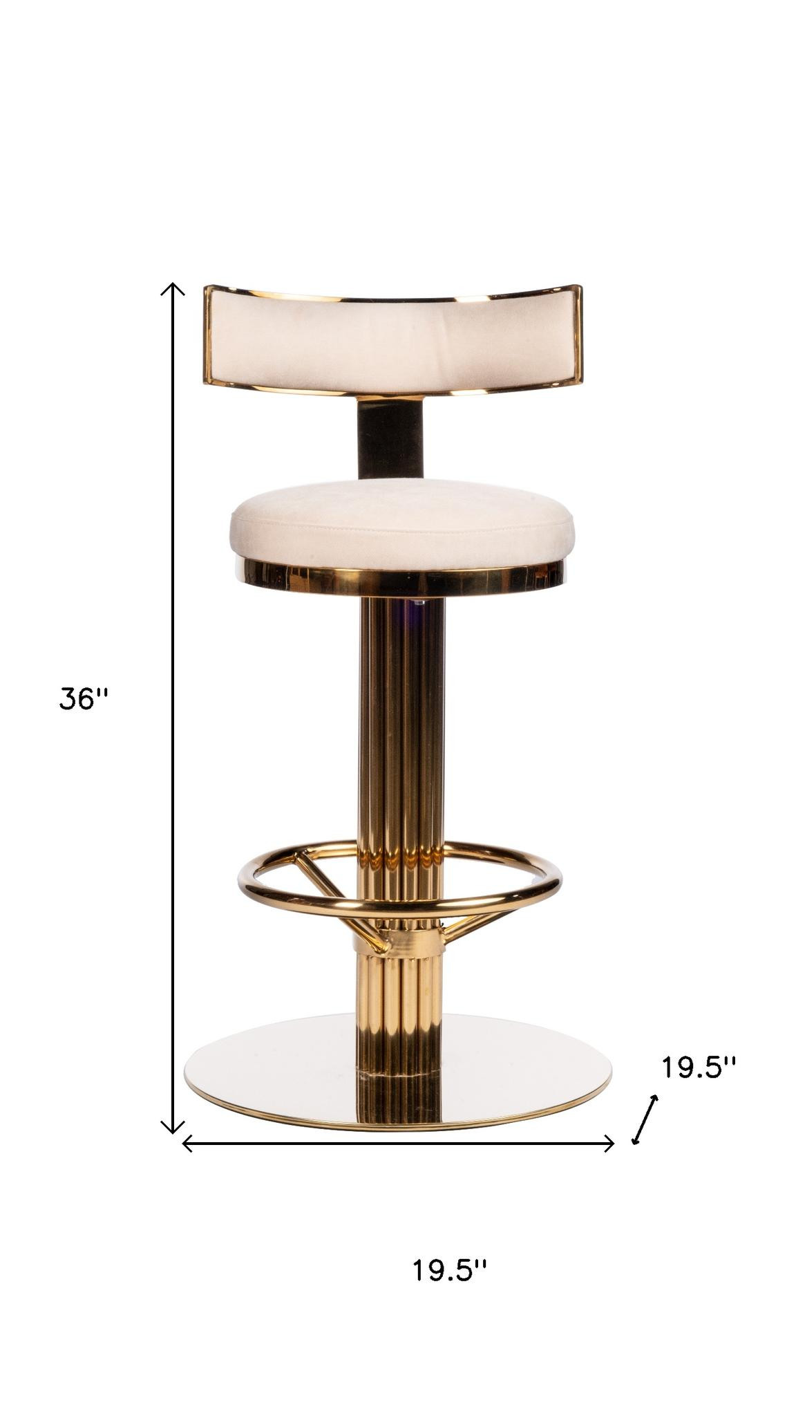 The perfect way to add some extra seating in your home, this 26-inch white and gold linen and steel counter height swivel bar chair will elevate the look and vibe of your room. The white linen seat of this stool is a nice contrast to the high quality, gold stainless steel of the base. Not only good looking and stylish, this chair features a round shaped seat and a rectangular partial back for the ultimate in comfort and enjoyment. 36.00-inch h x 19.50-inch w x 19.50-inch d.