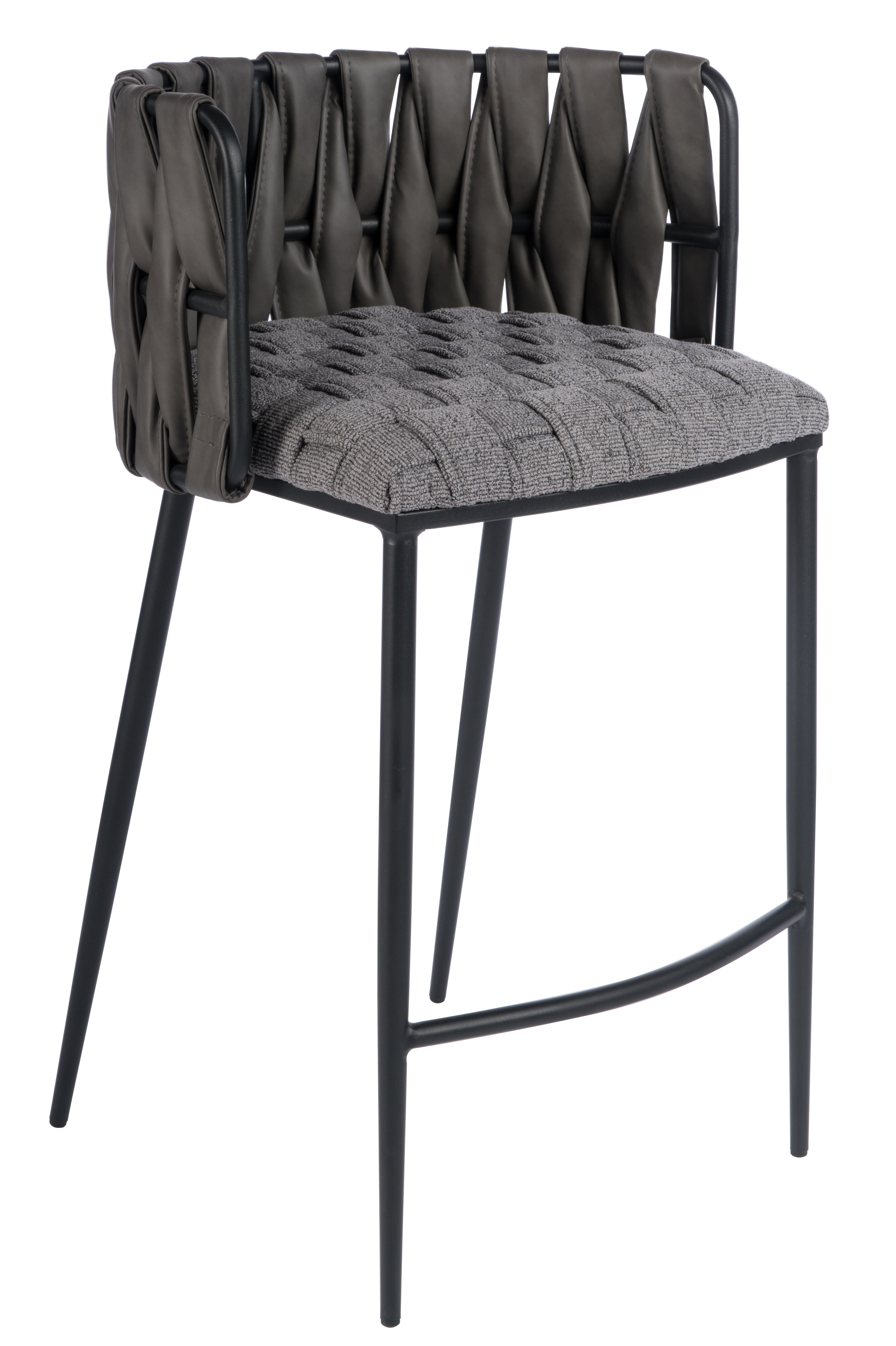 The perfect way to add some extra seating in your home, this 27-inch gray and black fabric faux leather and metal low back counter height bar chair will elevate the look and vibe of your room. Quality construction from black metal combines with gray fabric to give this stool a fresh and updated look. A low back mixed with a bucket shaped seat design makes this chair both comfortable and fashionable. 35.00-inch h x 20.00-inch w x 21.00-inch d.