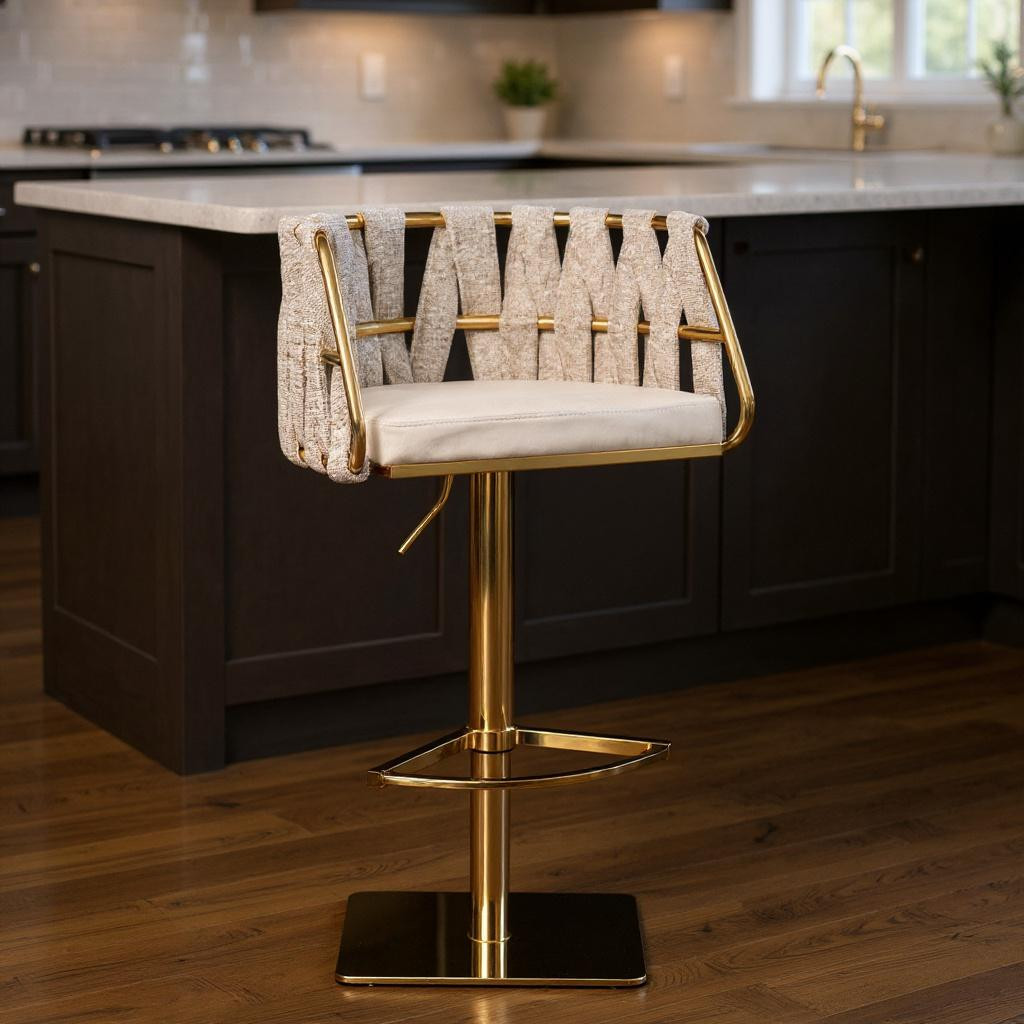 adjustable height swivel bar chair, white gold faux leather linen, leather linen steel low adjustable, faux leather linen steel low, swivel bar chair |
