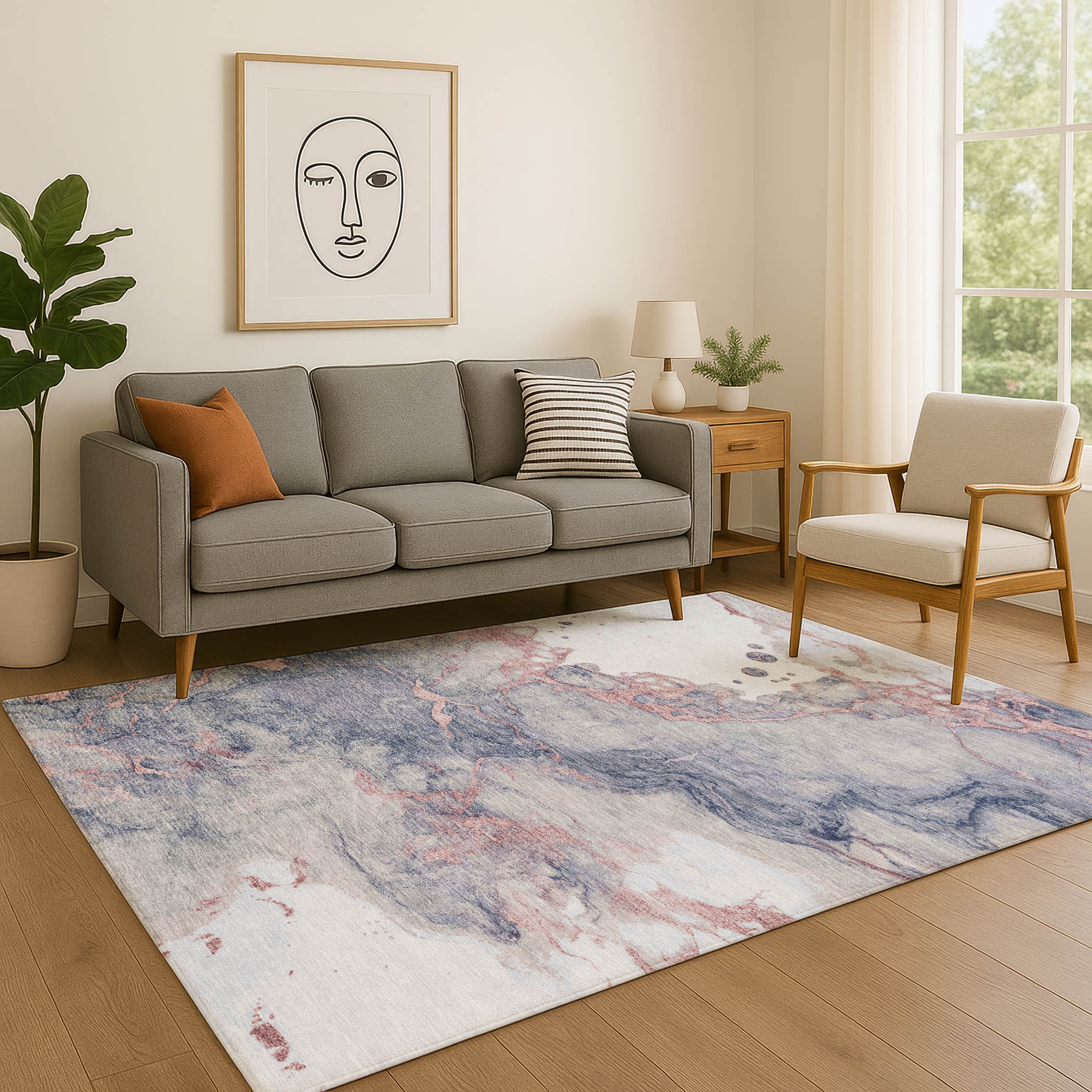 Add some artistry to your room with this 3-foot x 5-foot blush and gray abstract washable area rug with uv protection. Ideal for spaces with kids and pets, this rug is stain resistant to help repel dirt and spilled liquids. Built to last, this rug crafted from polyester fibers is known for its durability and long lasting appeal. Rugs are a great way to showcase your style, hide imperfections, warm your home and reduce noise. This smaller sized, transitional styled rug is just what you need for your walkway, bedside, in front of door, cabinet, refrigerator, or chair. 36.00-inch h x 60.00-inch w x 0.39-inch d.