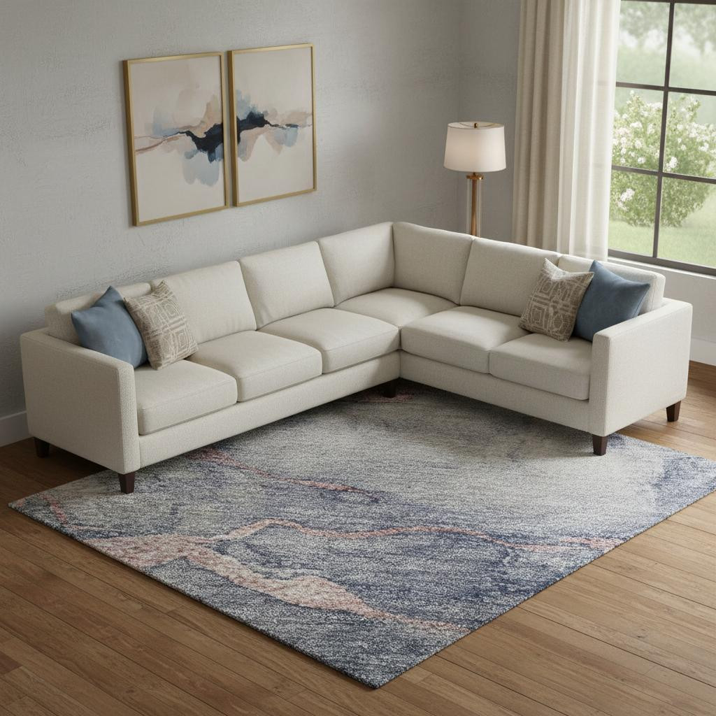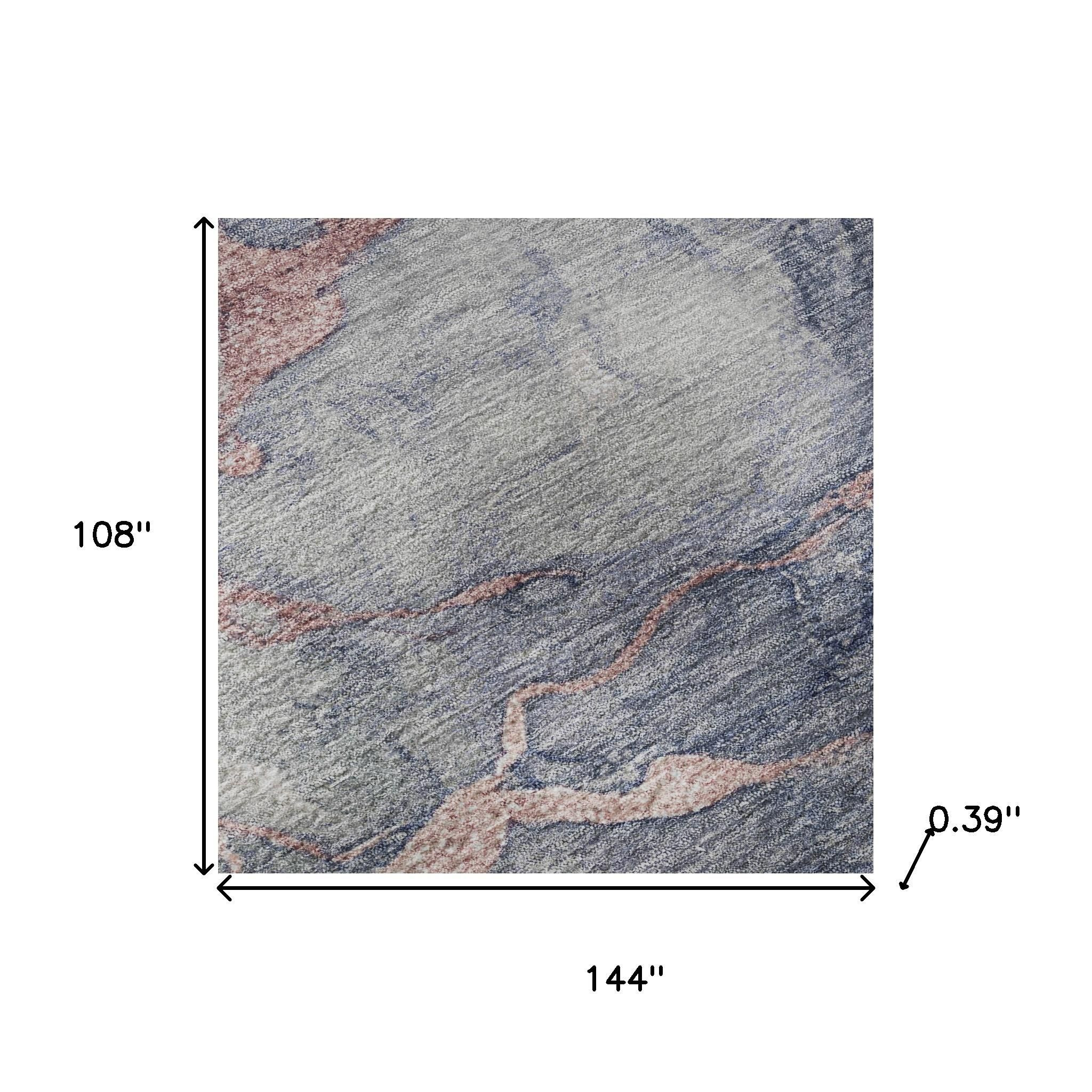 This 9-foot x 12-foot blush and gray abstract washable area rug with uv protection, is a great way to add warmth to a room. Ideal for spaces with kids and pets, this rug is stain resistant to help repel dirt and spilled liquids. Built to last, this rug crafted from polyester fibers is known for its durability and long lasting appeal. Rugs are a great way to showcase your style, hide imperfections, warm your home and reduce noise. This larger sized, transitional styled rug is ready to create a focal point or statement piece in your room. 108.00-inch h x 144.00-inch w x 0.39-inch d.