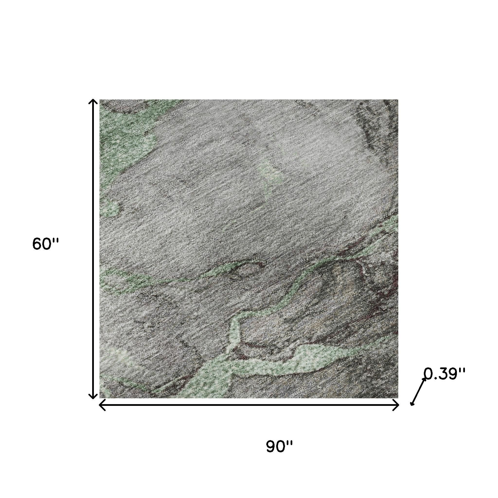 Add great coloration and comfortable texture to your space with this 5-foot x 8-foot green and gray abstract washable area rug with uv protection. Ideal for spaces with kids and pets, this rug is stain resistant to help repel dirt and spilled liquids. Built to last, this rug crafted from polyester fibers is known for its durability and long lasting appeal. Rugs are a great way to showcase your style, hide imperfections, warm your home and reduce noise. This larger sized, transitional styled rug is ready to create a focal point or statement piece in your room. 60.00-inch h x 90.00-inch w x 0.39-inch d.