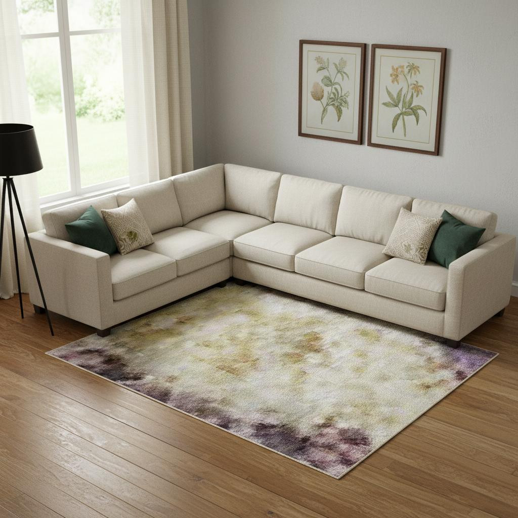 Add great coloration and comfortable texture to your space with this 10-foot x 14-foot purple and gold abstract washable area rug with uv protection. Ideal for spaces with kids and pets, this rug is stain resistant to help repel dirt and spilled liquids. Built to last, this rug crafted from polyester fibers is known for its durability and long lasting appeal. Rugs are a great way to showcase your style, hide imperfections, warm your home and reduce noise. This larger sized, transitional styled rug is ready to create a focal point or statement piece in your room. 120.00-inch h x 168.00-inch w x 0.39-inch d.