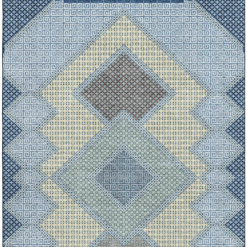 This 3-foot x 5-foot denim blue and gray geometric washable area rug with uv protection, is a great way to add warmth to a room. Ideal for spaces with kids and pets, this rug is stain resistant to help repel dirt and spilled liquids. Built to last, this rug crafted from polyester fibers is known for its durability and long lasting appeal. Rugs are a great way to showcase your style, hide imperfections, warm your home and reduce noise. This smaller sized, transitional styled rug is just what you need for your walkway, bedside, in front of door, cabinet, refrigerator, or chair. 36.00-inch h x 60.00-inch w x 0.39-inch d.