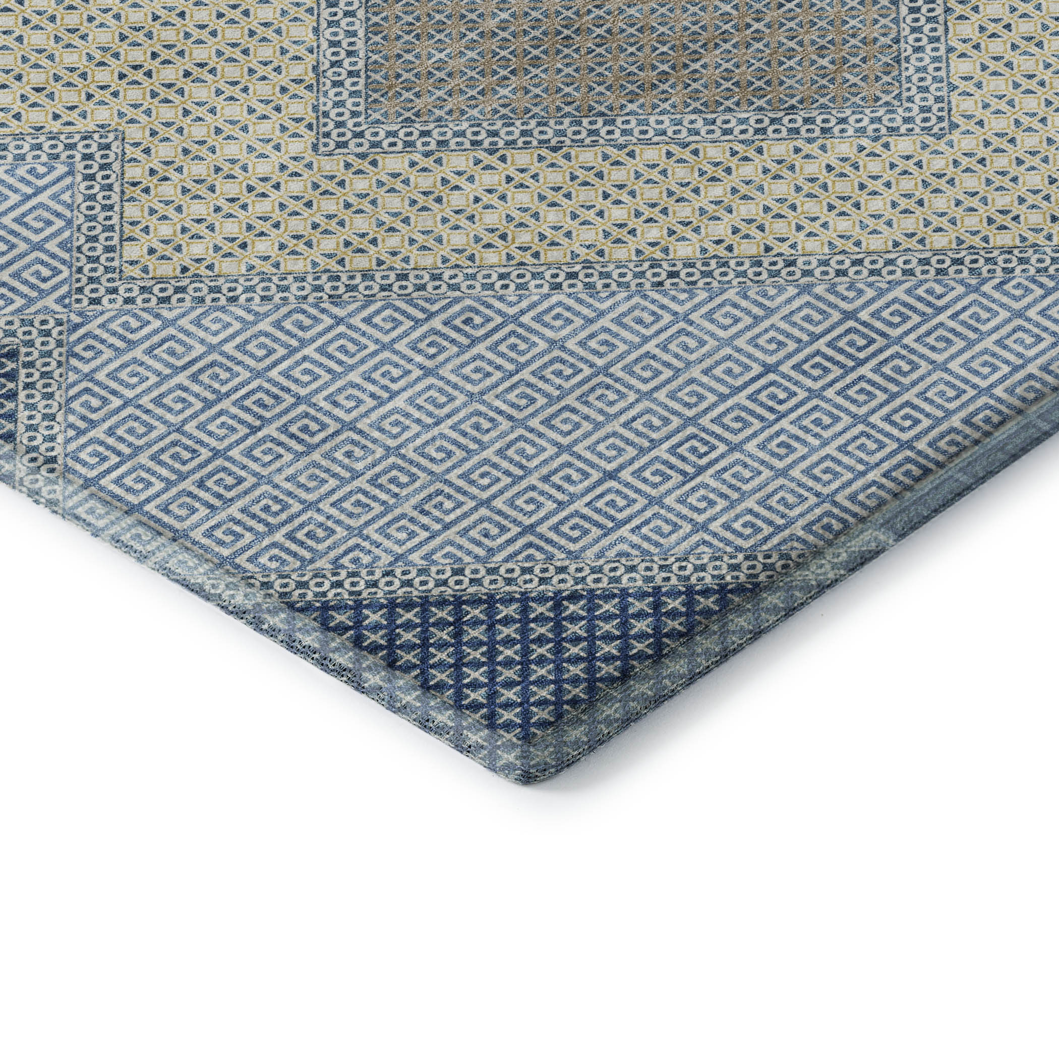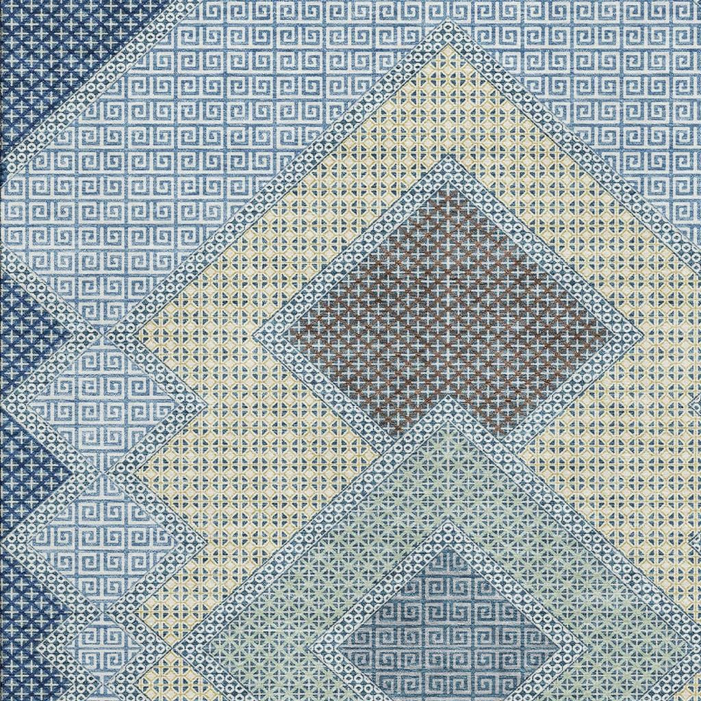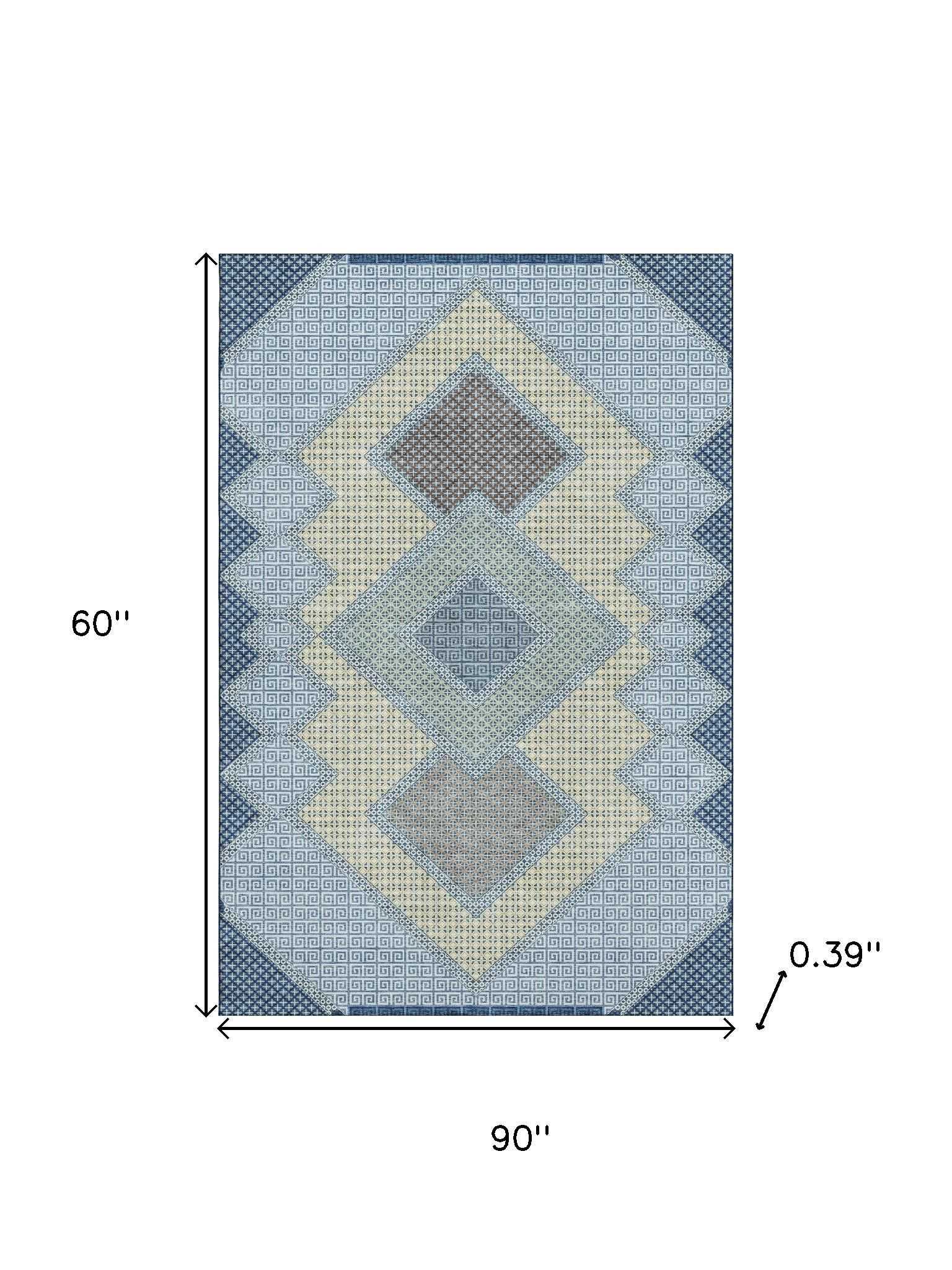 Add some artistry to your room with this 5-foot x 8-foot denim blue and gray geometric washable area rug with uv protection. Ideal for spaces with kids and pets, this rug is stain resistant to help repel dirt and spilled liquids. Built to last, this rug crafted from polyester fibers is known for its durability and long lasting appeal. Rugs are a great way to showcase your style, hide imperfections, warm your home and reduce noise. This larger sized, transitional styled rug is ready to create a focal point or statement piece in your room. 60.00-inch h x 90.00-inch w x 0.39-inch d.