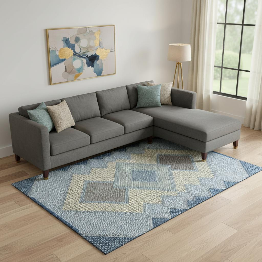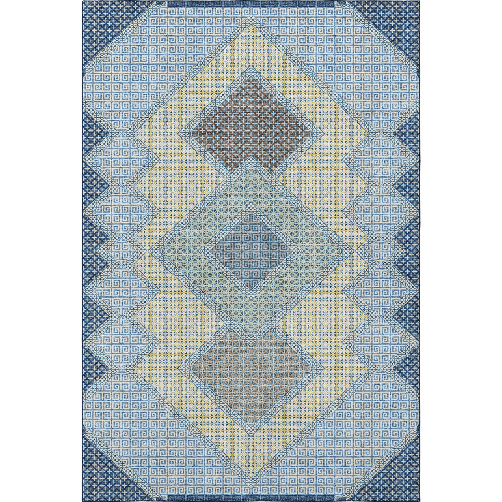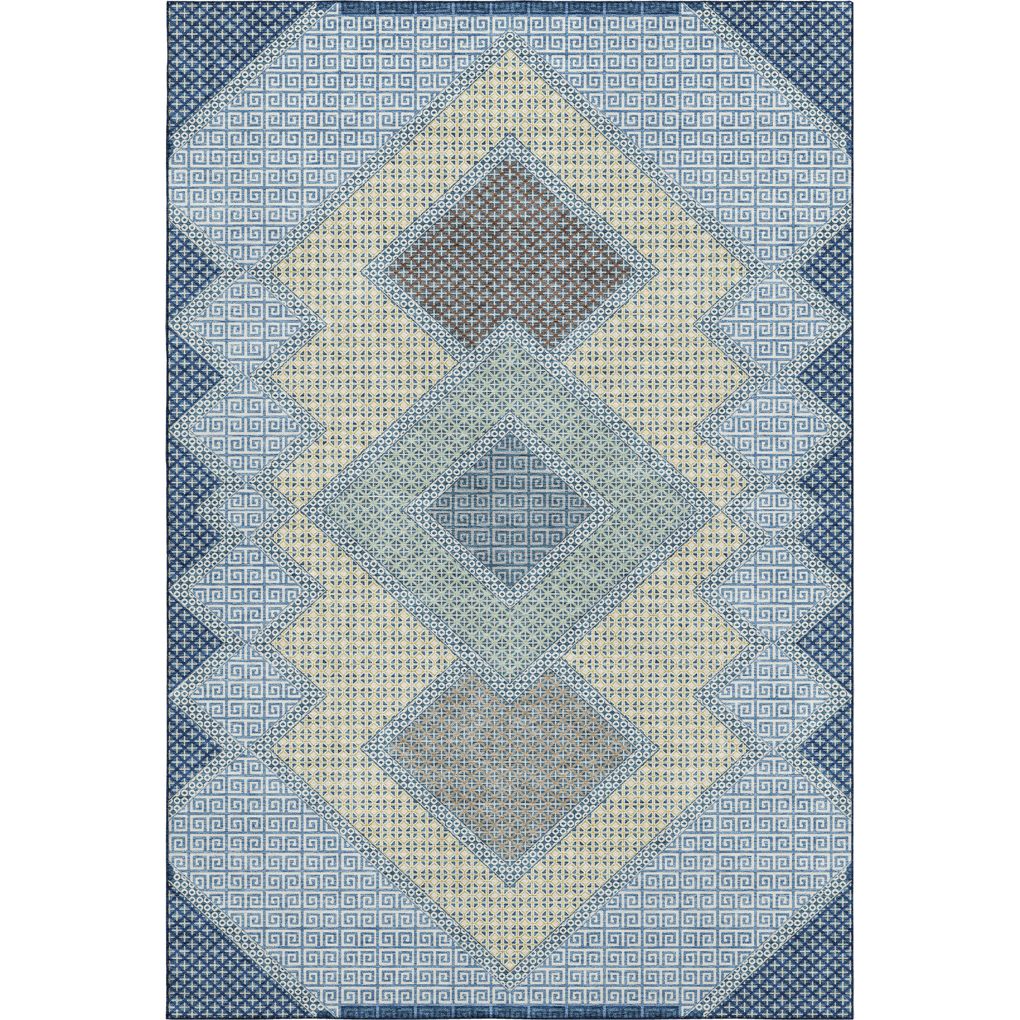 Add great coloration and comfortable texture to your space with this 10-foot x 14-foot denim blue and gray geometric washable area rug with uv protection. Ideal for spaces with kids and pets, this rug is stain resistant to help repel dirt and spilled liquids. Built to last, this rug crafted from polyester fibers is known for its durability and long lasting appeal. Rugs are a great way to showcase your style, hide imperfections, warm your home and reduce noise. This larger sized, transitional styled rug is ready to create a focal point or statement piece in your room. 120.00-inch h x 168.00-inch w x 0.39-inch d.