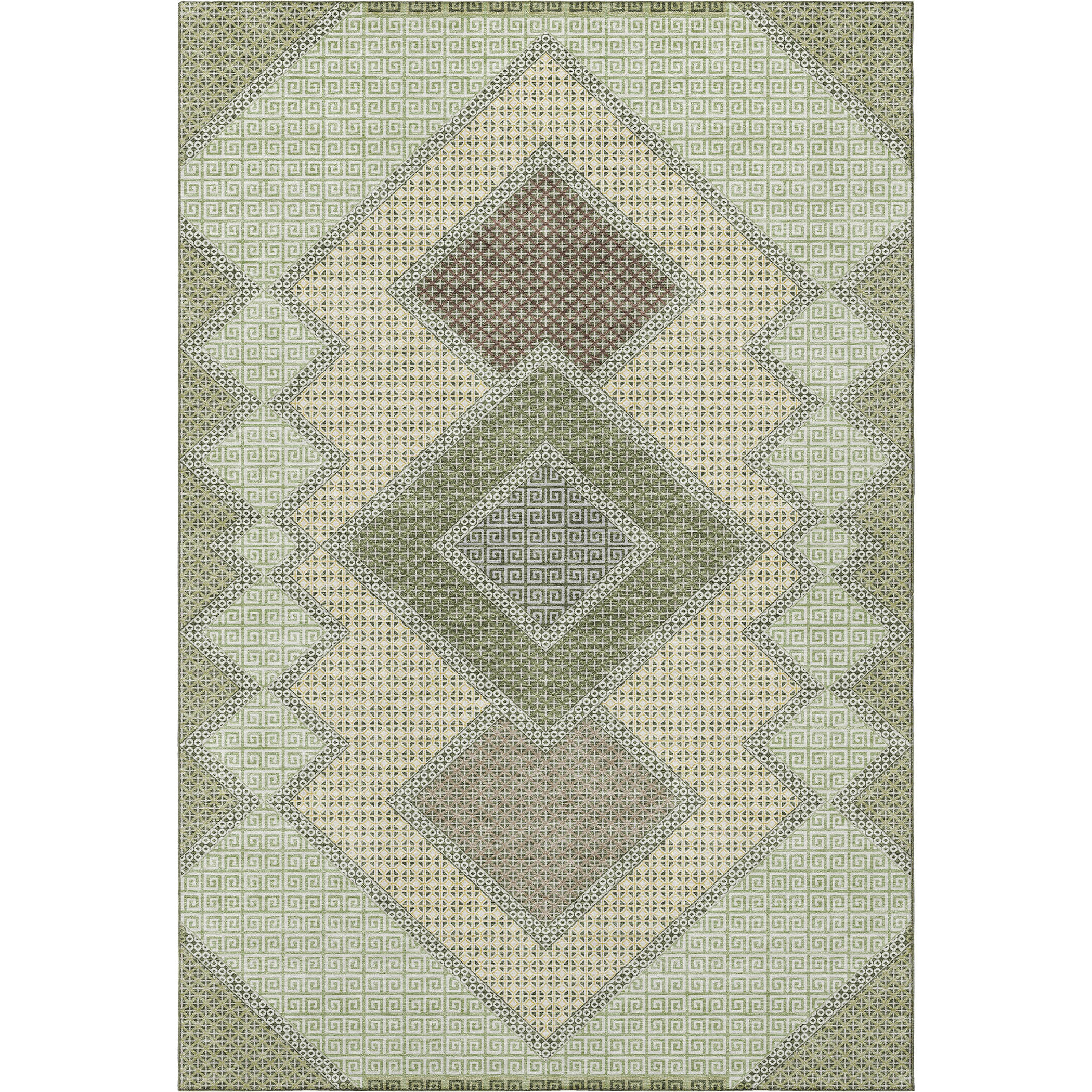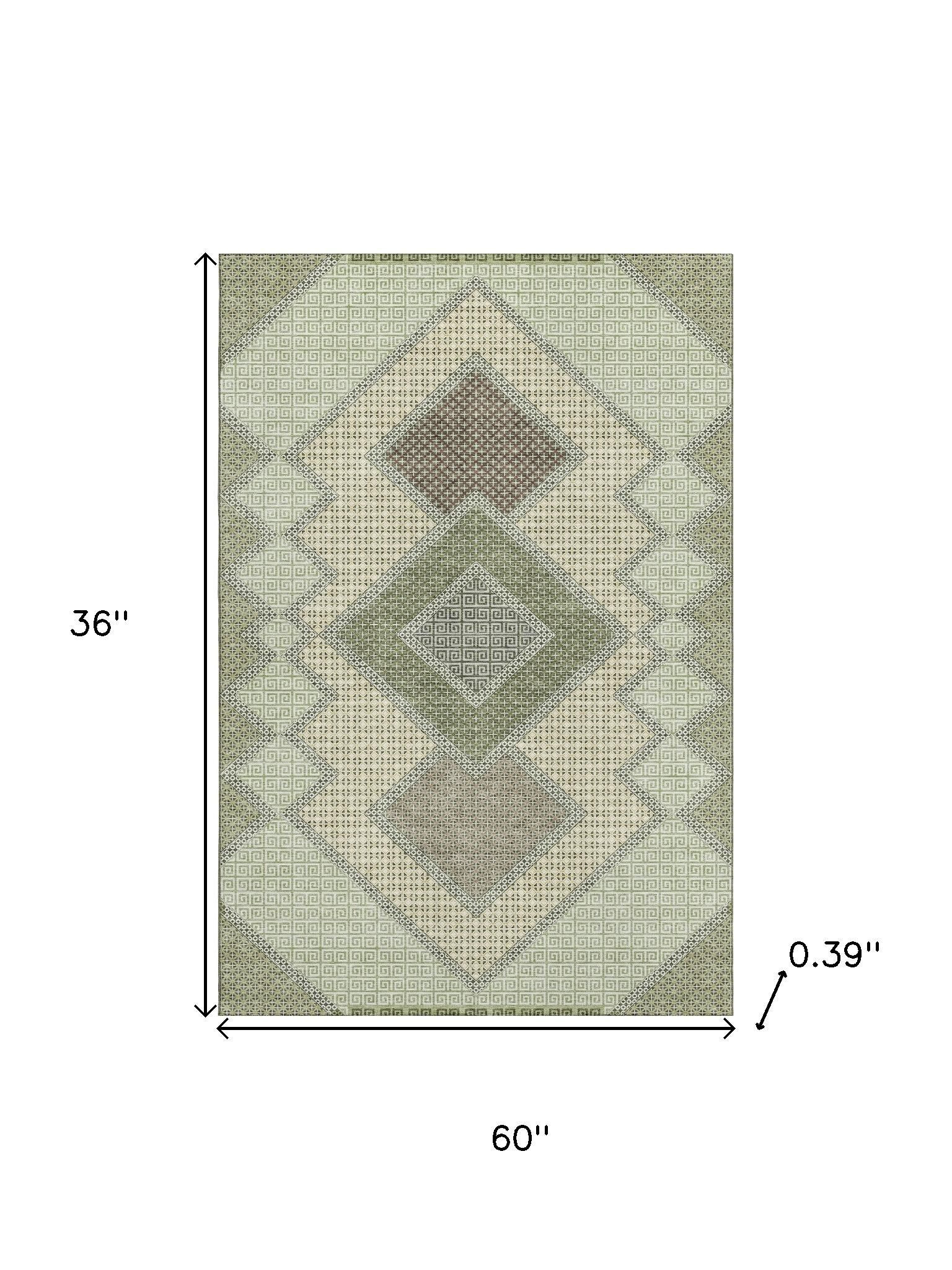 This 3-foot x 5-foot green and gray geometric washable area rug with uv protection, is a great way to add warmth to a room. Ideal for spaces with kids and pets, this rug is stain resistant to help repel dirt and spilled liquids. Built to last, this rug crafted from polyester fibers is known for its durability and long lasting appeal. Rugs are a great way to showcase your style, hide imperfections, warm your home and reduce noise. This smaller sized, transitional styled rug is just what you need for your walkway, bedside, in front of door, cabinet, refrigerator, or chair. 36.00-inch h x 60.00-inch w x 0.39-inch d.