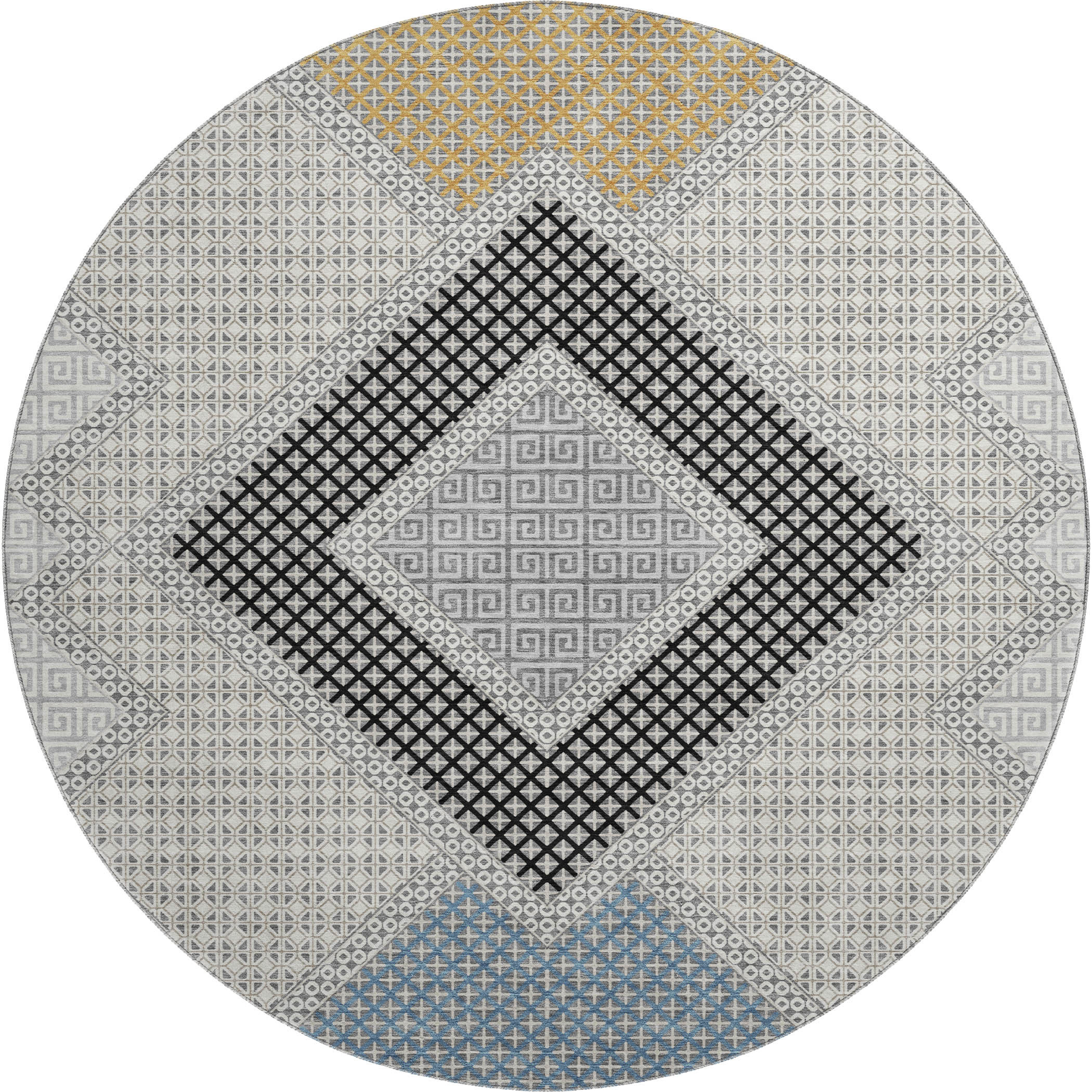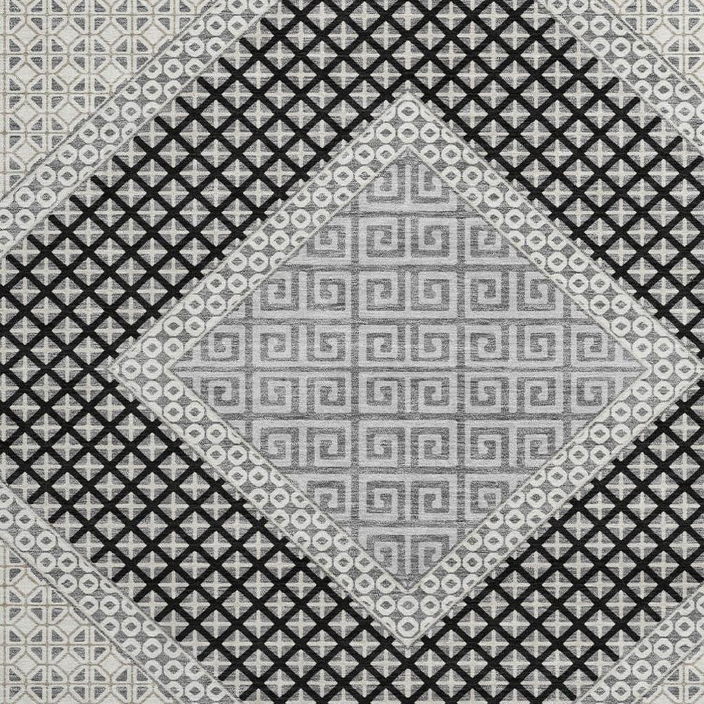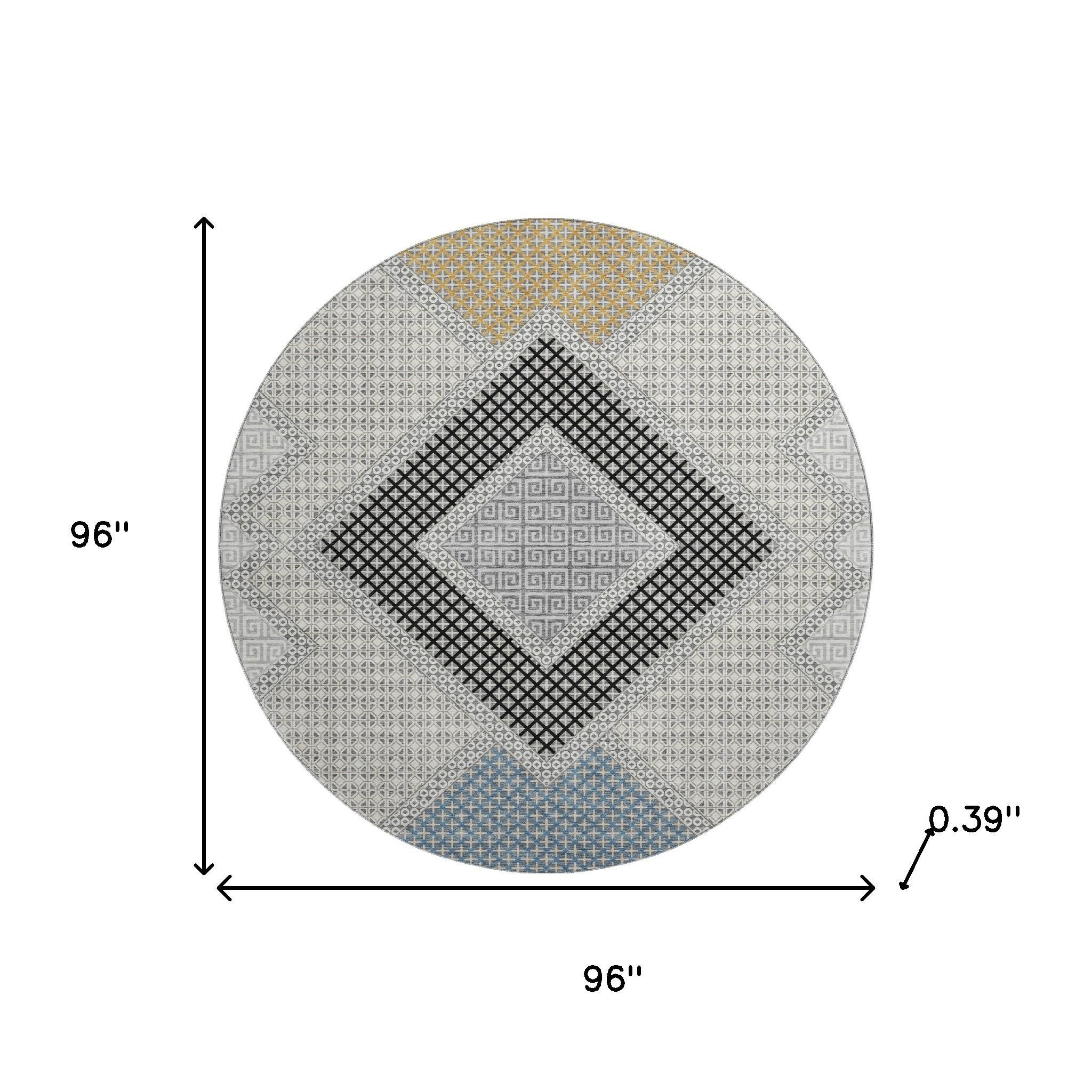 Add great coloration and comfortable texture to your space with this 8-foot gray and charcoal geometric washable round rug with uv protection. Ideal for spaces with kids and pets, this rug is stain resistant to help repel dirt and spilled liquids. Built to last, this rug crafted from polyester fibers is known for its durability and long lasting appeal. Rugs are a great way to showcase your style, hide imperfections, warm your home and reduce noise. This larger sized, transitional styled rug is ready to create a focal point or statement piece in your room. 96.00-inch h x 96.00-inch w x 0.39-inch d.