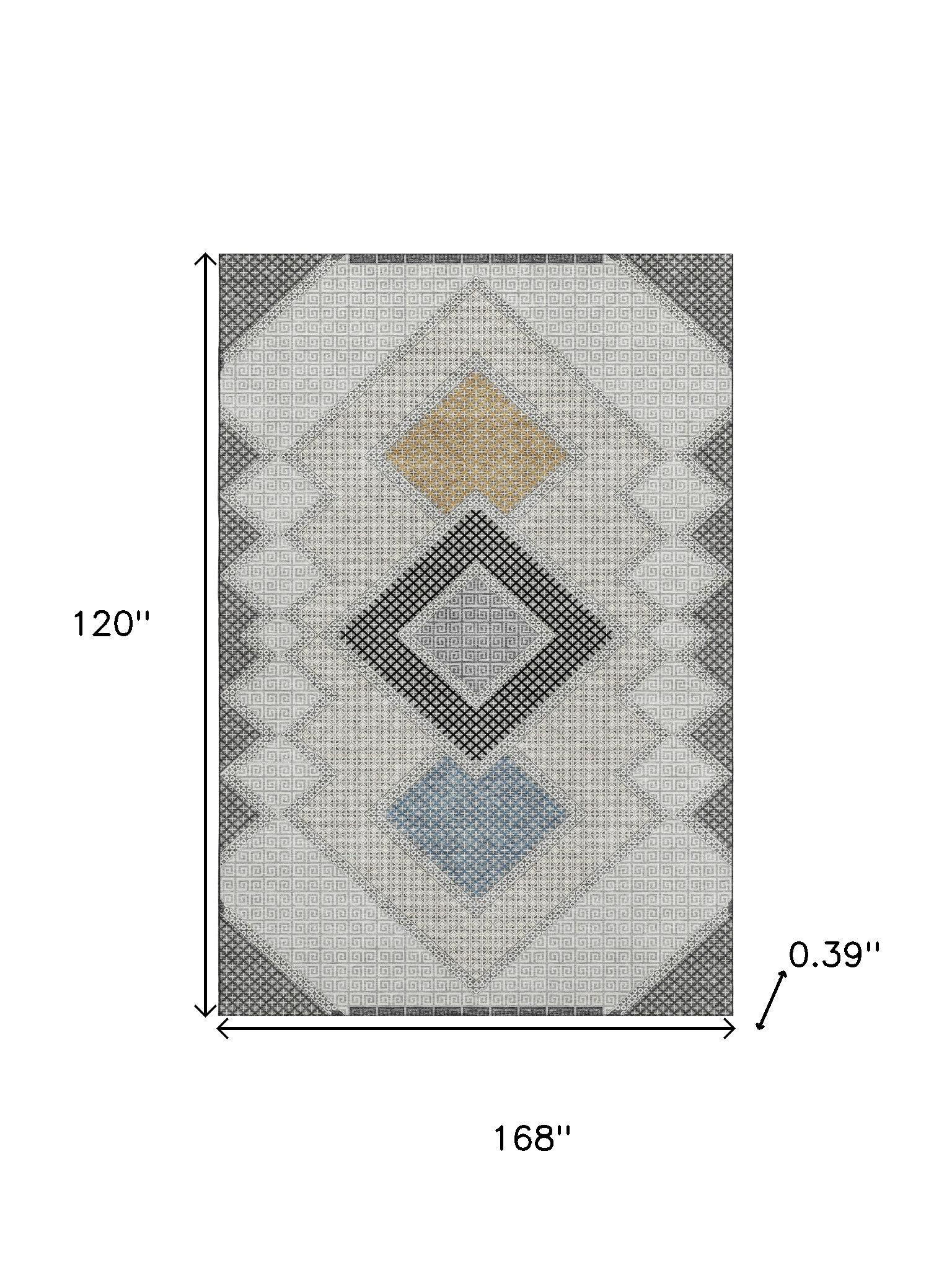 Set an inviting tone in your space with this 10-foot x 14-foot gray and charcoal geometric washable area rug with uv protection. Ideal for spaces with kids and pets, this rug is stain resistant to help repel dirt and spilled liquids. Built to last, this rug crafted from polyester fibers is known for its durability and long lasting appeal. Rugs are a great way to showcase your style, hide imperfections, warm your home and reduce noise. This larger sized, transitional styled rug is ready to create a focal point or statement piece in your room. 120.00-inch h x 168.00-inch w x 0.39-inch d.