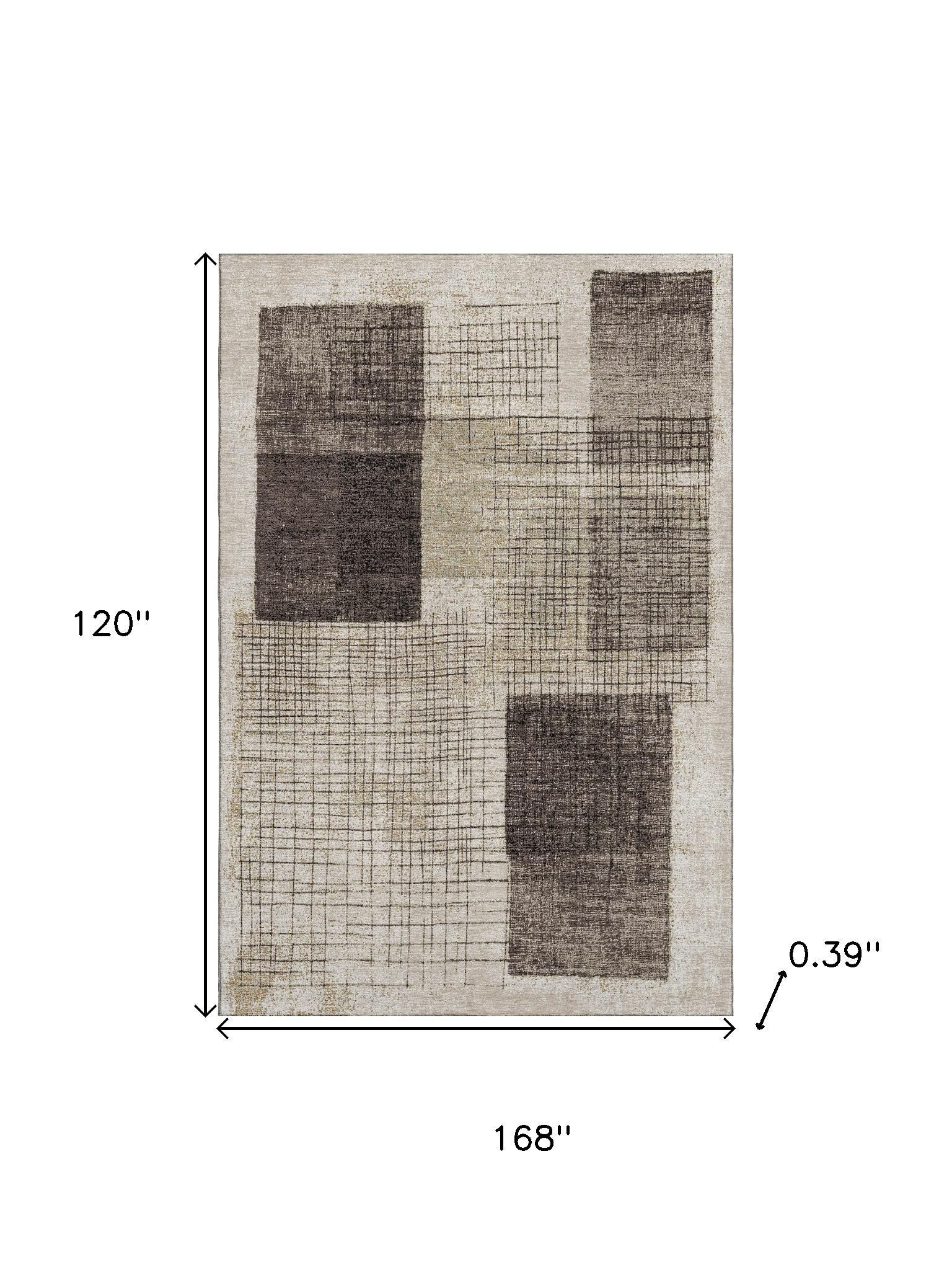 Set an inviting tone in your space with this 10-foot x 14-foot brown and taupe geometric washable area rug with uv protection. Ideal for spaces with kids and pets, this rug is stain resistant to help repel dirt and spilled liquids. Built to last, this rug crafted from polyester fibers is known for its durability and long lasting appeal. Rugs are a great way to showcase your style, hide imperfections, warm your home and reduce noise. This larger sized, transitional styled rug is ready to create a focal point or statement piece in your room. 120.00-inch h x 168.00-inch w x 0.39-inch d.