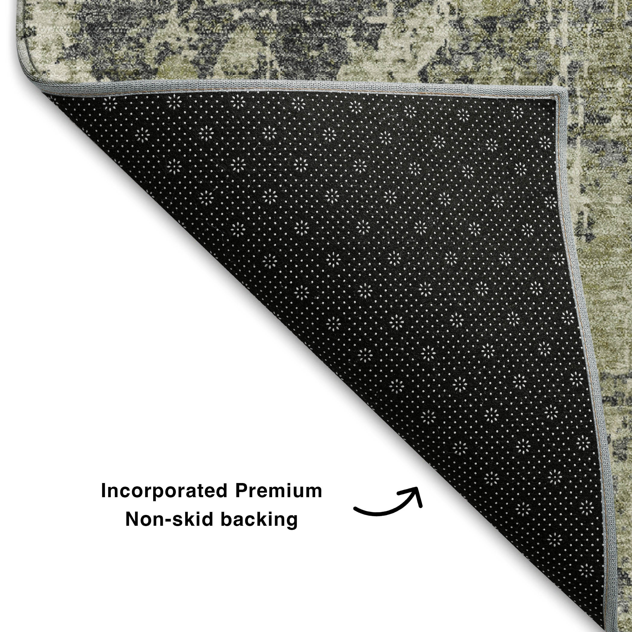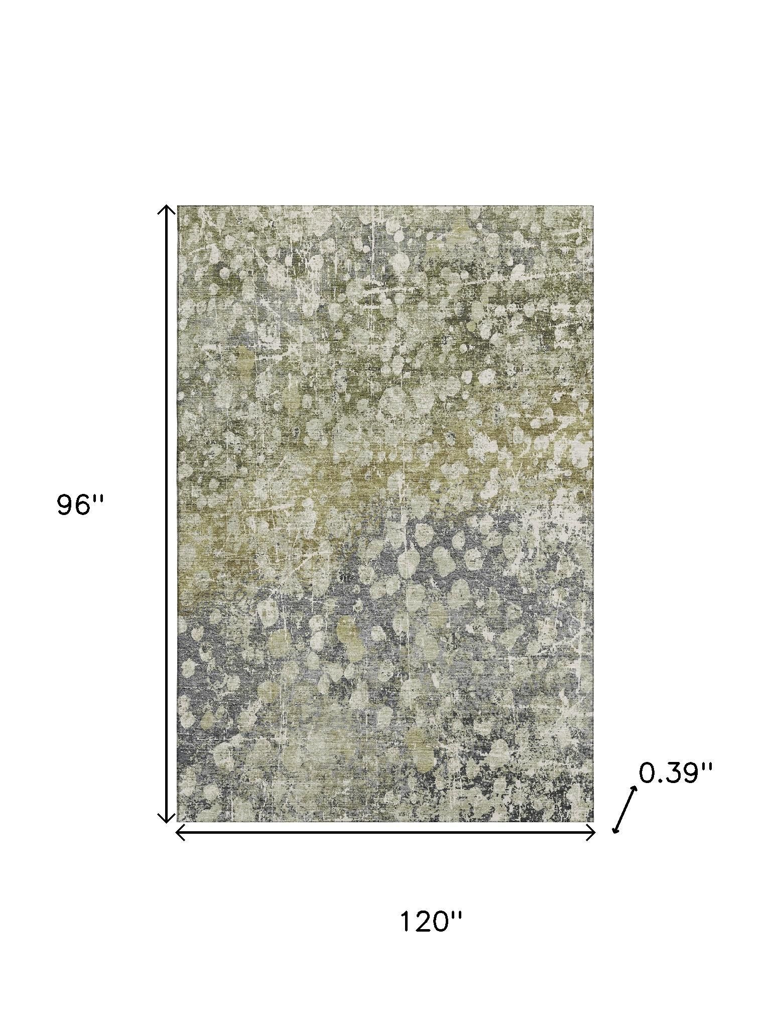 Add some artistry to your room with this 8-foot x 10-foot olive green and gray abstract washable area rug with uv protection. Ideal for spaces with kids and pets, this rug is stain resistant to help repel dirt and spilled liquids. Built to last, this rug crafted from polyester fibers is known for its durability and long lasting appeal. Rugs are a great way to showcase your style, hide imperfections, warm your home and reduce noise. This larger sized, transitional styled rug is ready to create a focal point or statement piece in your room. 96.00-inch h x 120.00-inch w x 0.39-inch d.