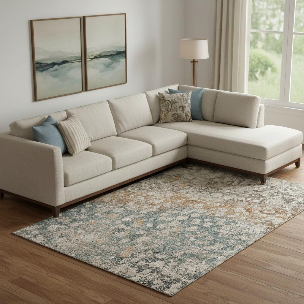 This 8-foot x 10-foot light taupe and brown abstract washable area rug with uv protection, is a great way to add warmth to a room. Ideal for spaces with kids and pets, this rug is stain resistant to help repel dirt and spilled liquids. Built to last, this rug crafted from polyester fibers is known for its durability and long lasting appeal. Rugs are a great way to showcase your style, hide imperfections, warm your home and reduce noise. This larger sized, transitional styled rug is ready to create a focal point or statement piece in your room. 96.00-inch h x 120.00-inch w x 0.39-inch d.