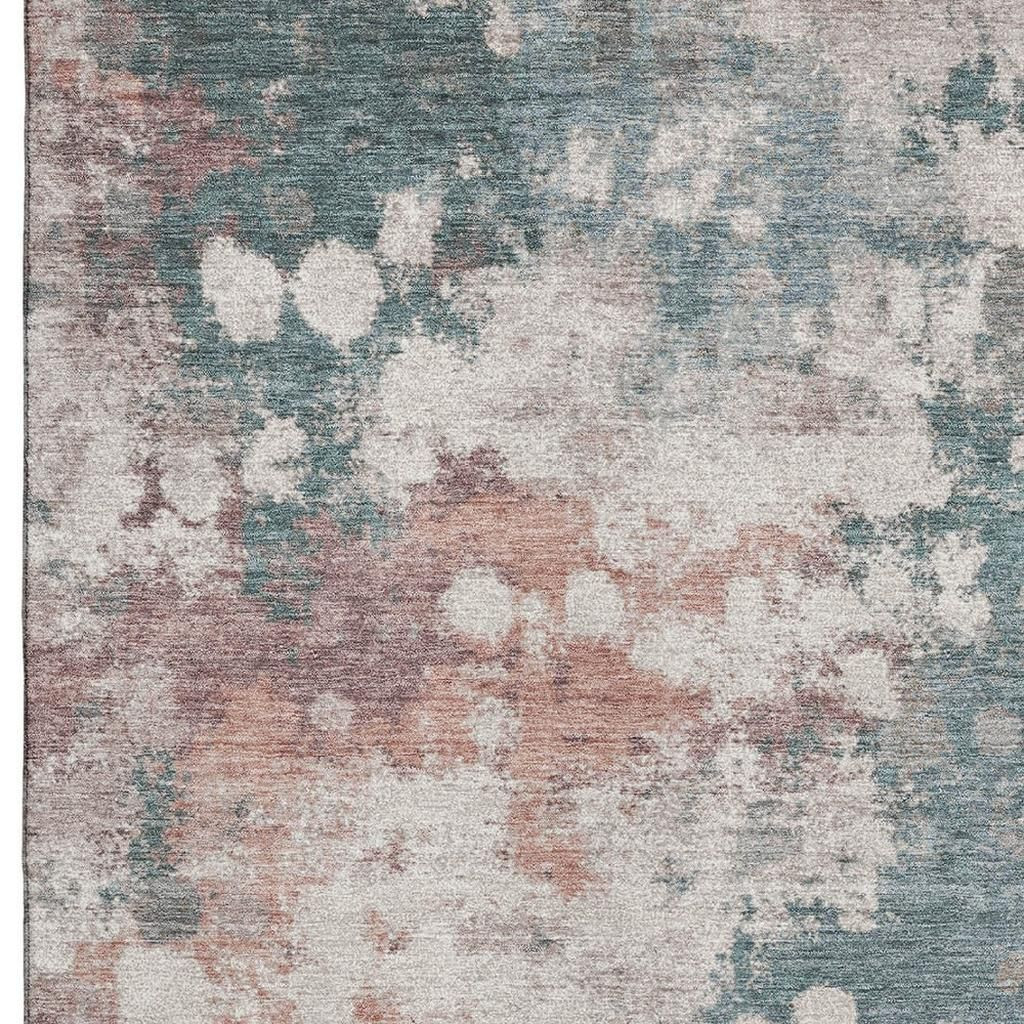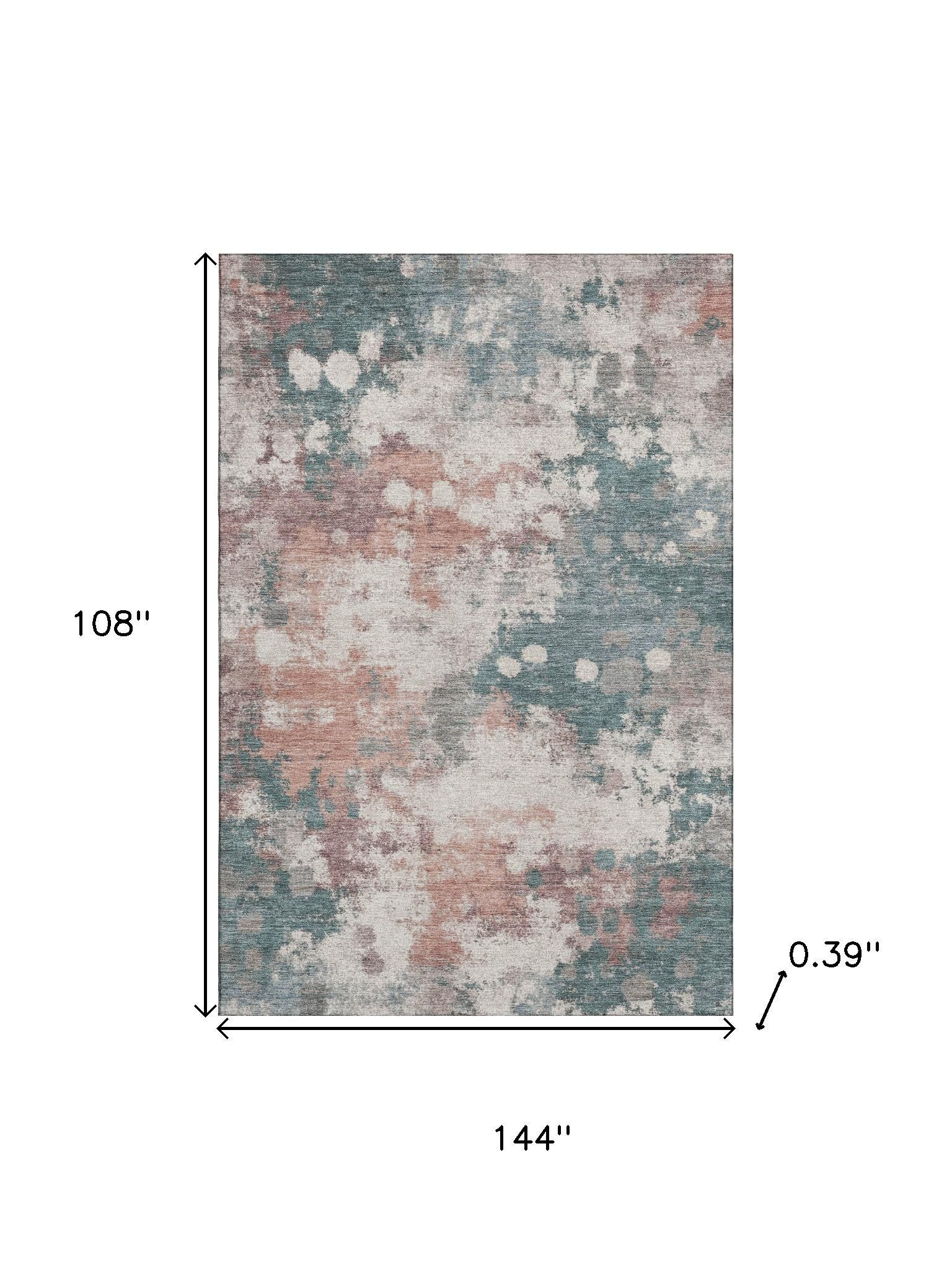 Add some artistry to your room with this 9-foot x 12-foot coral and teal abstract washable area rug with uv protection. Ideal for spaces with kids and pets, this rug is stain resistant to help repel dirt and spilled liquids. Built to last, this rug crafted from polyester fibers is known for its durability and long lasting appeal. Rugs are a great way to showcase your style, hide imperfections, warm your home and reduce noise. This larger sized, transitional styled rug is ready to create a focal point or statement piece in your room. 108.00-inch h x 144.00-inch w x 0.39-inch d.