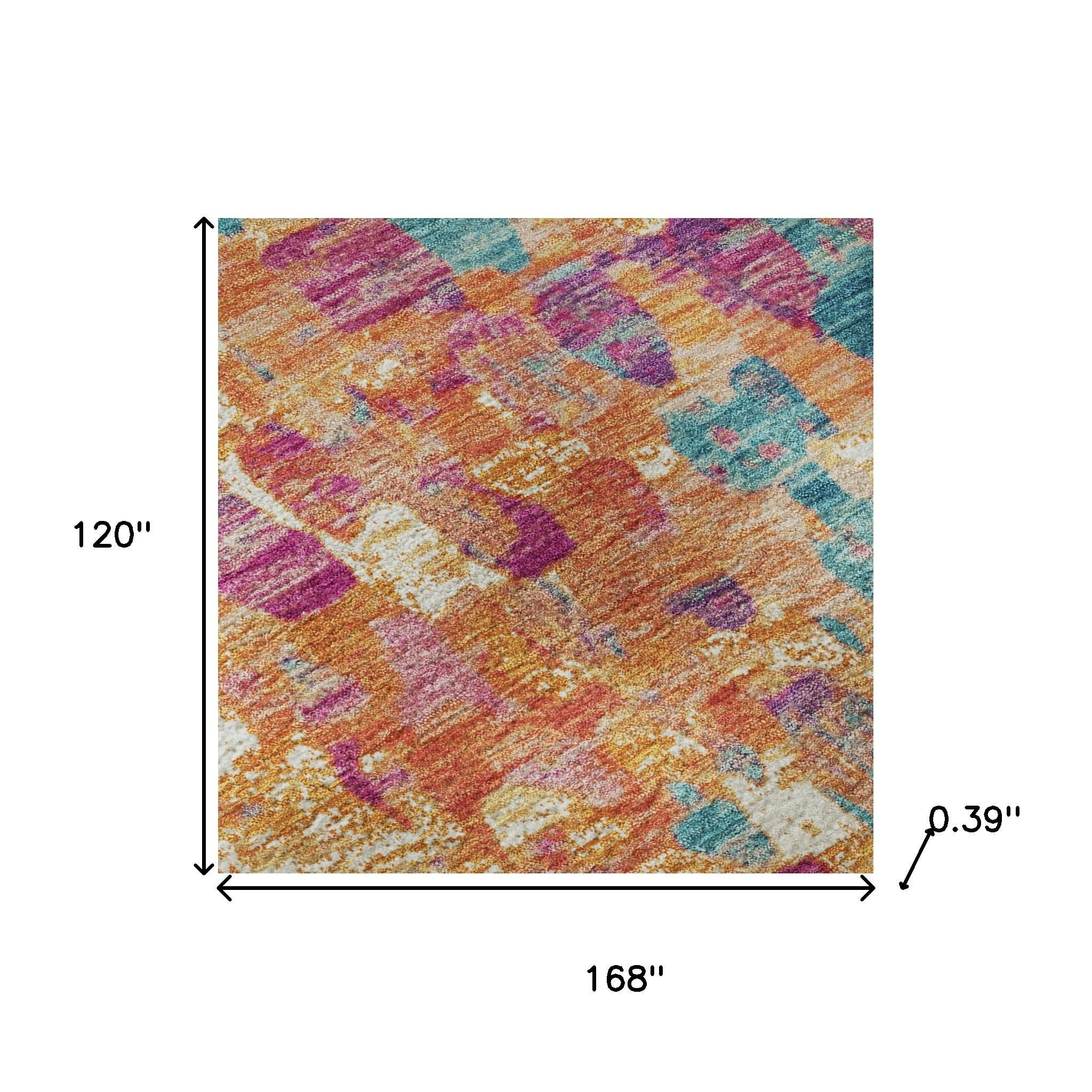 This 10-foot x 14-foot blush and teal abstract washable area rug with uv protection, is a great way to add warmth to a room. Ideal for spaces with kids and pets, this rug is stain resistant to help repel dirt and spilled liquids. Built to last, this rug crafted from polyester fibers is known for its durability and long lasting appeal. Rugs are a great way to showcase your style, hide imperfections, warm your home and reduce noise. This larger sized, transitional styled rug is ready to create a focal point or statement piece in your room. 120.00-inch h x 168.00-inch w x 0.39-inch d.