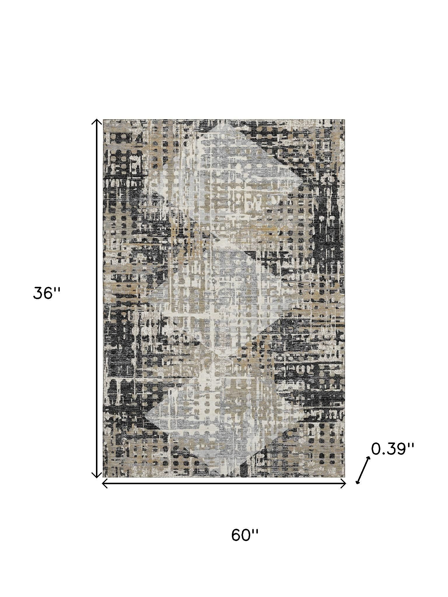 This 3-foot x 5-foot black and gray geometric washable area rug with uv protection, is a great way to add warmth to a room. Ideal for spaces with kids and pets, this rug is stain resistant to help repel dirt and spilled liquids. Built to last, this rug crafted from polyester fibers is known for its durability and long lasting appeal. Rugs are a great way to showcase your style, hide imperfections, warm your home and reduce noise. This smaller sized, transitional styled rug is just what you need for your walkway, bedside, in front of door, cabinet, refrigerator, or chair. 36.00-inch h x 60.00-inch w x 0.39-inch d.