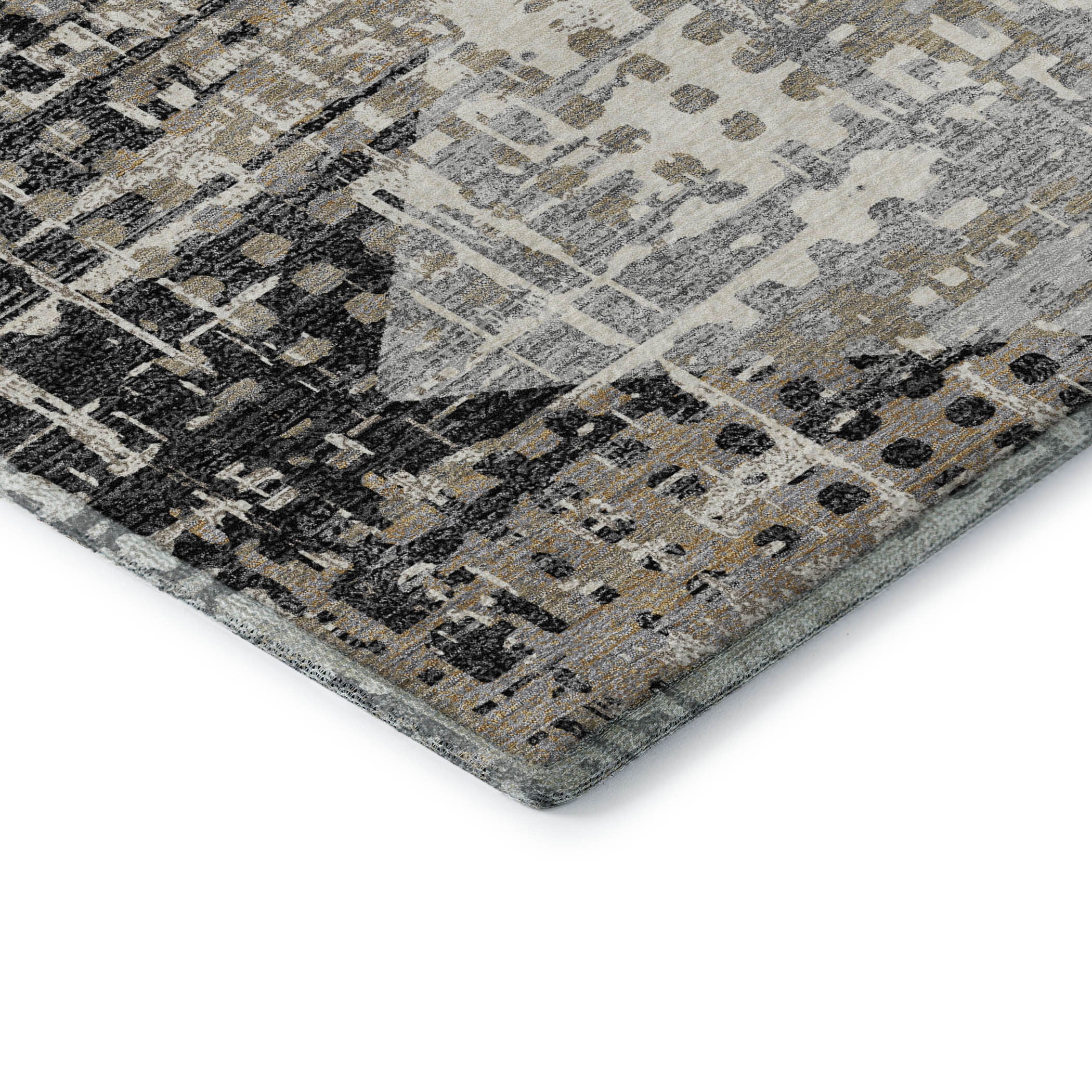 Add some artistry to your room with this 8-foot x 10-foot black and gray geometric washable area rug with uv protection. Ideal for spaces with kids and pets, this rug is stain resistant to help repel dirt and spilled liquids. Built to last, this rug crafted from polyester fibers is known for its durability and long lasting appeal. Rugs are a great way to showcase your style, hide imperfections, warm your home and reduce noise. This larger sized, transitional styled rug is ready to create a focal point or statement piece in your room. 96.00-inch h x 120.00-inch w x 0.39-inch d.