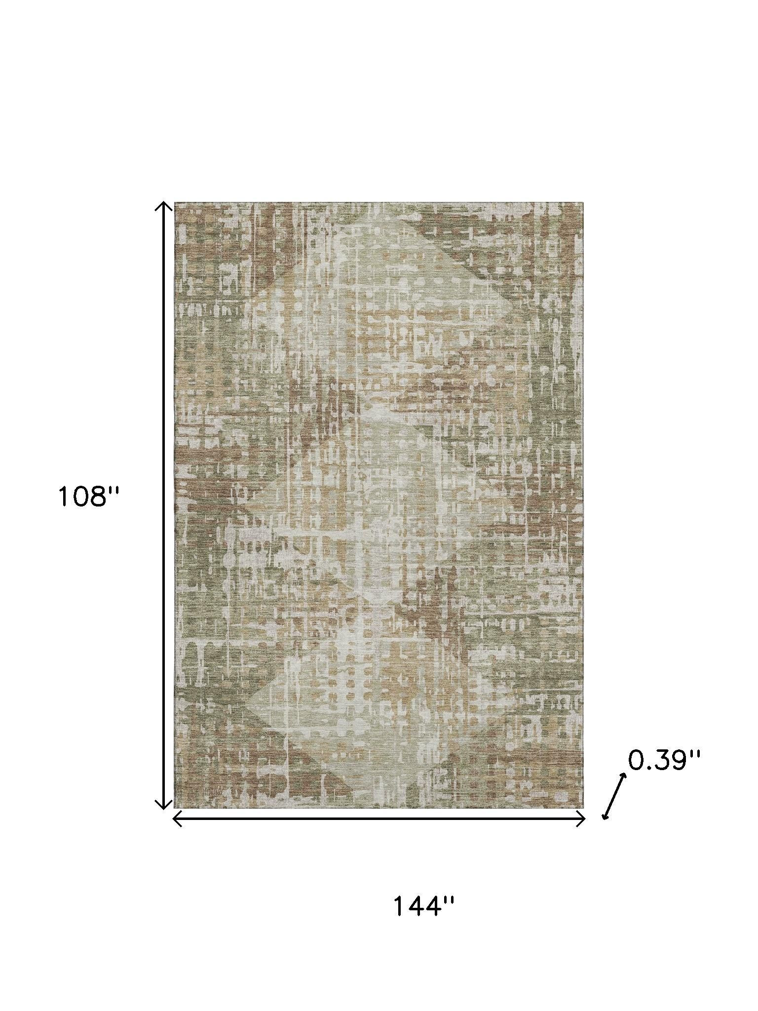 Add great coloration and comfortable texture to your space with this 9-foot x 12-foot fern green and beige geometric washable area rug with uv protection. Ideal for spaces with kids and pets, this rug is stain resistant to help repel dirt and spilled liquids. Built to last, this rug crafted from polyester fibers is known for its durability and long lasting appeal. Rugs are a great way to showcase your style, hide imperfections, warm your home and reduce noise. This larger sized, transitional styled rug is ready to create a focal point or statement piece in your room. 108.00-inch h x 144.00-inch w x 0.39-inch d.