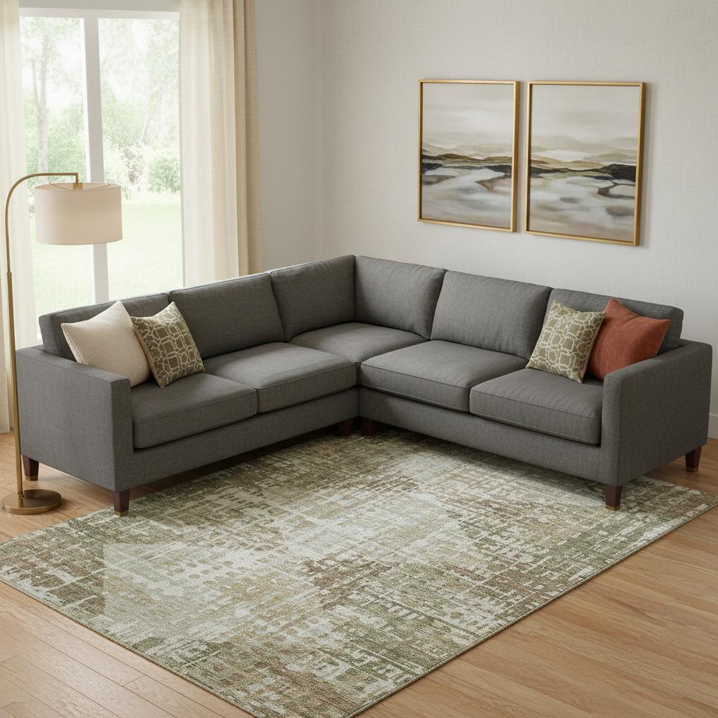 Add some artistry to your room with this 10-foot x 14-foot fern green and beige geometric washable area rug with uv protection. Ideal for spaces with kids and pets, this rug is stain resistant to help repel dirt and spilled liquids. Built to last, this rug crafted from polyester fibers is known for its durability and long lasting appeal. Rugs are a great way to showcase your style, hide imperfections, warm your home and reduce noise. This larger sized, transitional styled rug is ready to create a focal point or statement piece in your room. 120.00-inch h x 168.00-inch w x 0.39-inch d.