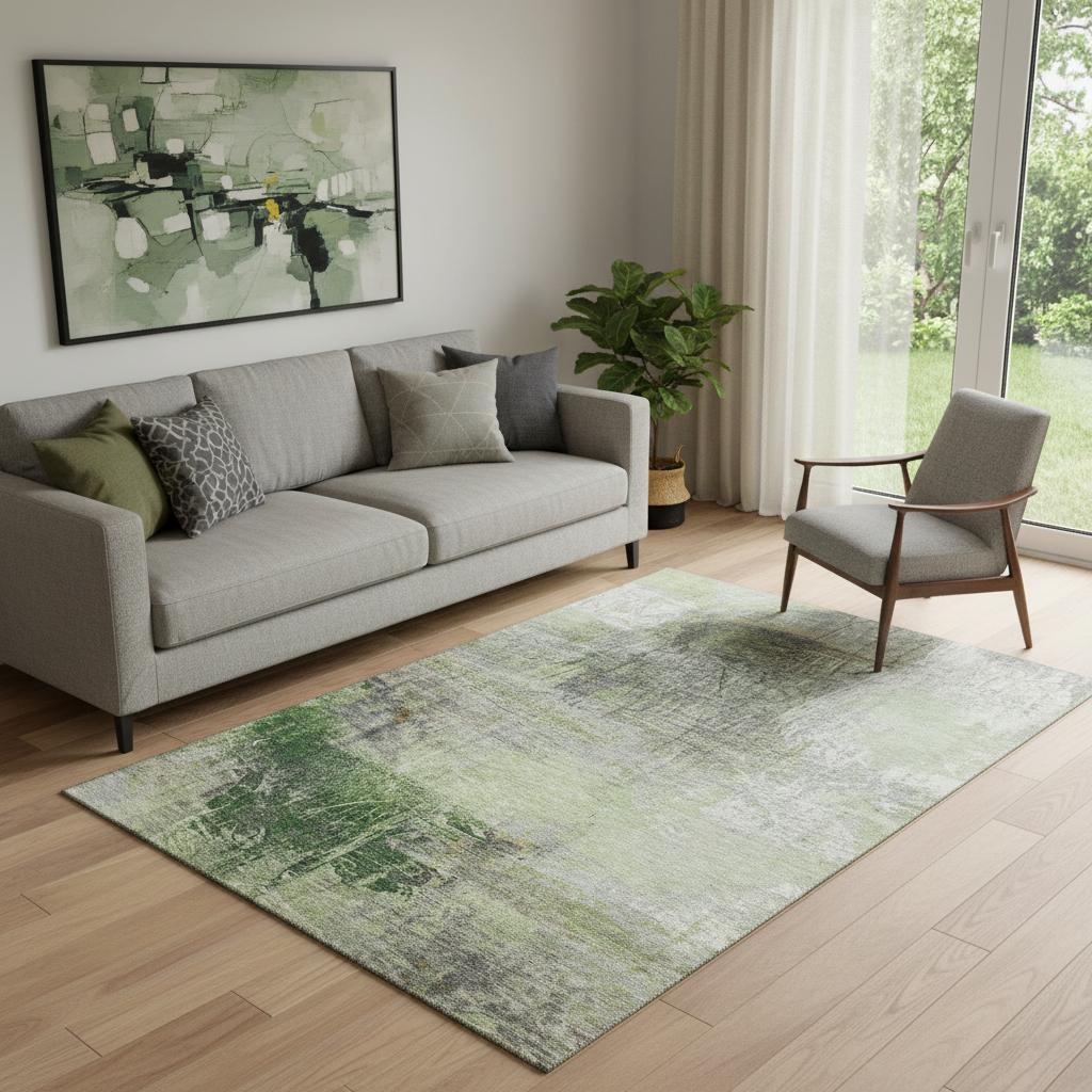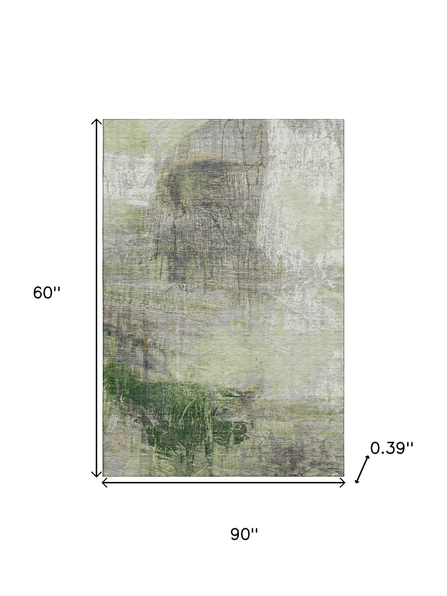 Add great coloration and comfortable texture to your space with this 5-foot x 8-foot sage and ivory abstract washable area rug with uv protection. Ideal for spaces with kids and pets, this rug is stain resistant to help repel dirt and spilled liquids. Built to last, this rug crafted from polyester fibers is known for its durability and long lasting appeal. Rugs are a great way to showcase your style, hide imperfections, warm your home and reduce noise. This larger sized, transitional styled rug is ready to create a focal point or statement piece in your room. 60.00-inch h x 90.00-inch w x 0.39-inch d.