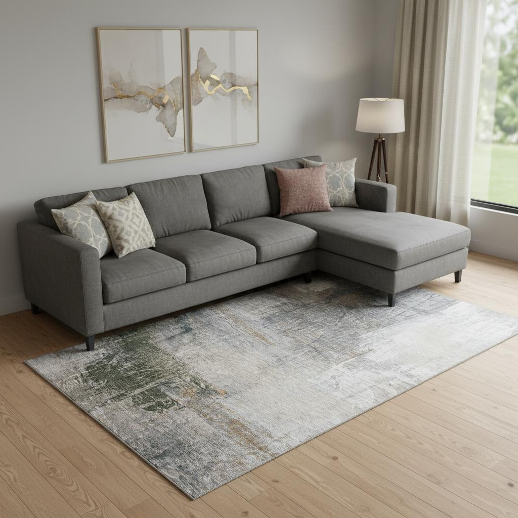 Add great coloration and comfortable texture to your space with this 8-foot x 10-foot light taupe and gray abstract washable area rug with uv protection. Ideal for spaces with kids and pets, this rug is stain resistant to help repel dirt and spilled liquids. Built to last, this rug crafted from polyester fibers is known for its durability and long lasting appeal. Rugs are a great way to showcase your style, hide imperfections, warm your home and reduce noise. This larger sized, transitional styled rug is ready to create a focal point or statement piece in your room. 96.00-inch h x 120.00-inch w x 0.39-inch d.